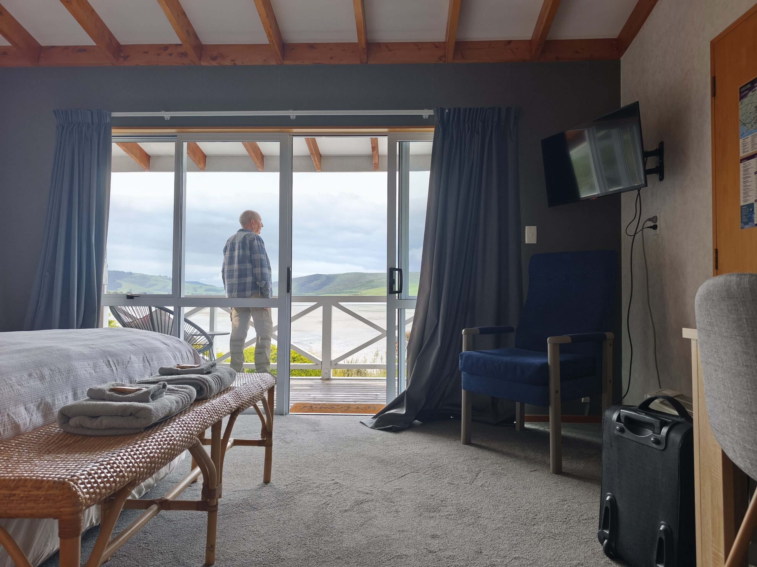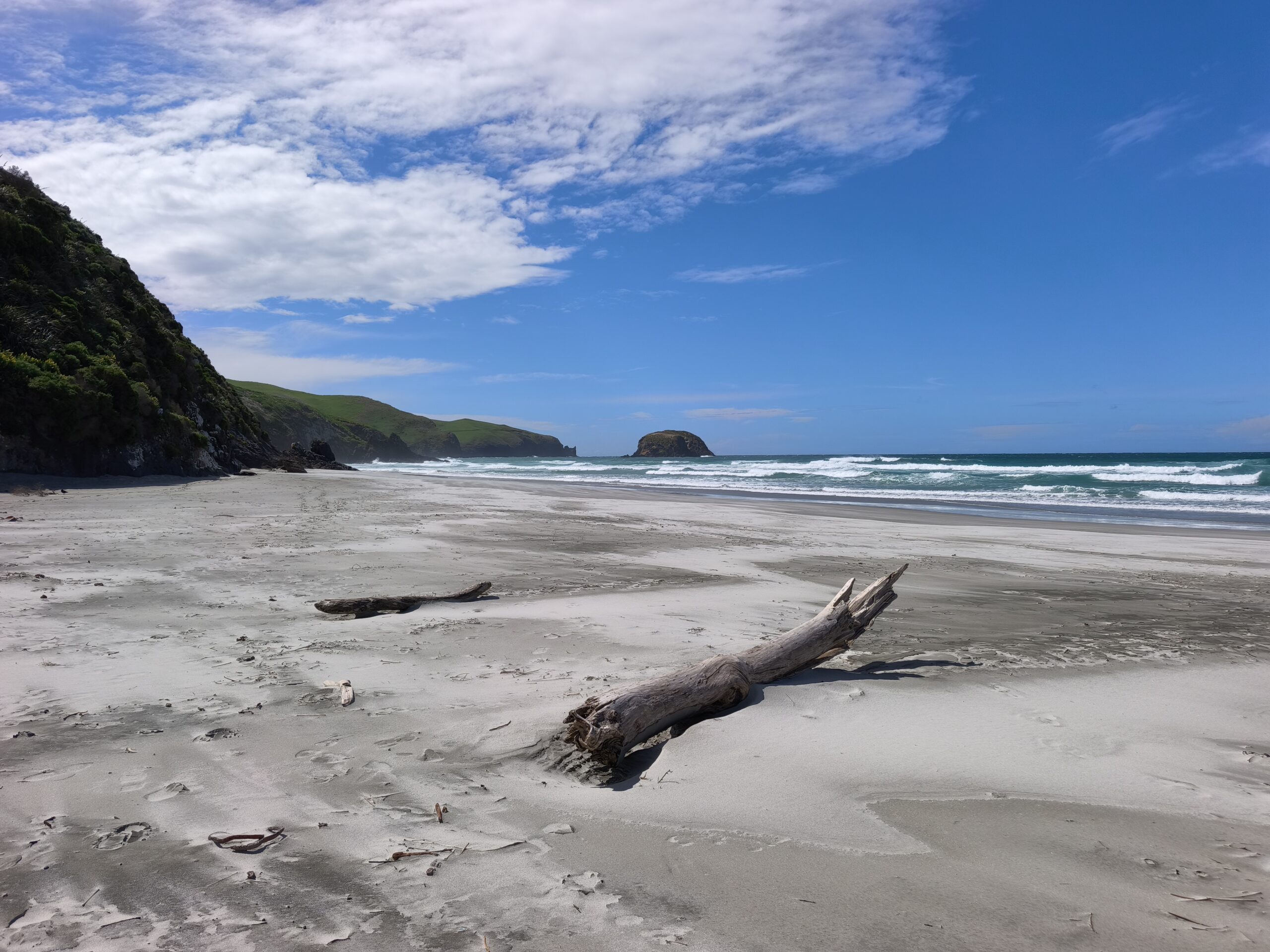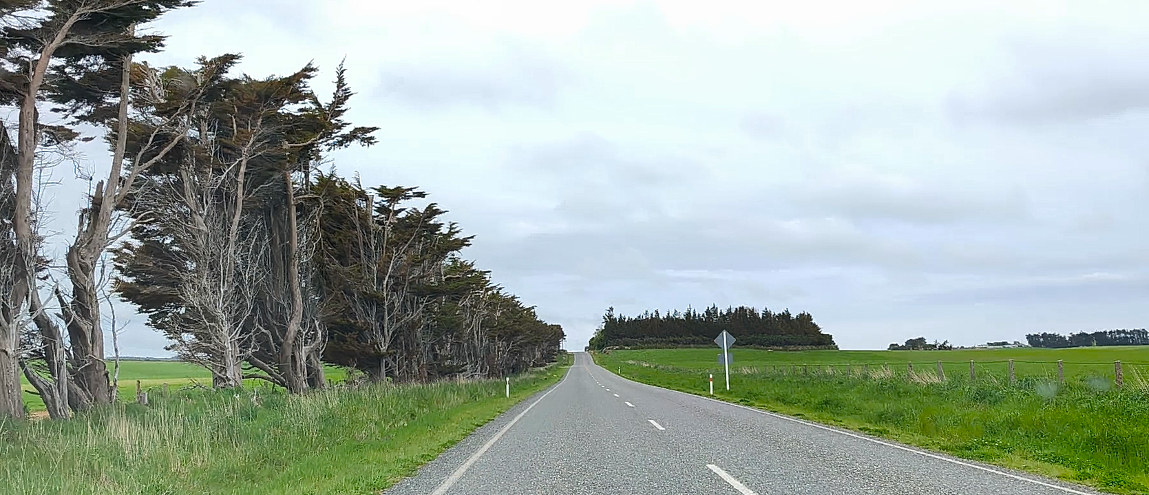 Hoy bajo al sur de la isla. Voy por la 94, pasando por Manapouri para acceder a la Southern Scenic Route (va desde Queenstown a Invercargill. Rectas interminables, verdes campos, ovejas y vacas, montañas al oeste. Un recorrido para disfrutar del paisaje y la soledad. Paro en el puente colgante de Clifden, el puente de madera más largo del país, 111,5 m (1899) sobre el río Waiau. Continúo hacia Tuatapere, la capital de las salchichas de NZ. Y diviso la costa al llegar al mirador McCraken´s Rest con vistas a la bahía de Te Waewae. El día es buenísimo, casi nada de viento y el horizonte despejado. Paro en Riverton a comer. Pueblo costero conocido medio en broma como la “Riviera del sur”. La ruta continúa hacia Invercargill, el paraíso de los moteros y con mucho tráfico. He decidido llegar a Waipapa Point. El sitio tiene dos atractivos: su faro –Waipapa Point Lighthouse-, que está hecho de varios tipos de madera (entre ellas la madera de Kauri), Al lado del faro, salen unos senderos que llevan a una playa en la que se puede ver, con suerte, leones marinos. Y un sitio para observar cómo los árboles y el resto de vegetación se han ido adaptando a las condiciones de la zona y al fuerte viento característico. Y el campo está lleno de ovejas… que se ven a miles por todos sitios. Estoy en la costa de los Catlins, el extremo sureste de la Isla Sur. Una región cautivadora con tierras de cultivo, bush autóctono, faros solitarios, playas vacías, senderos por la naturaleza y la posibilidad de avistar fauna. Y zona muy ventosa con climatología cambiante. Aprovecho a ver la bahía de Curio, con su bosque petrificado (¡se ve sólo con marea baja!). En 10 min llego a Waikawa. Vale por hoy.