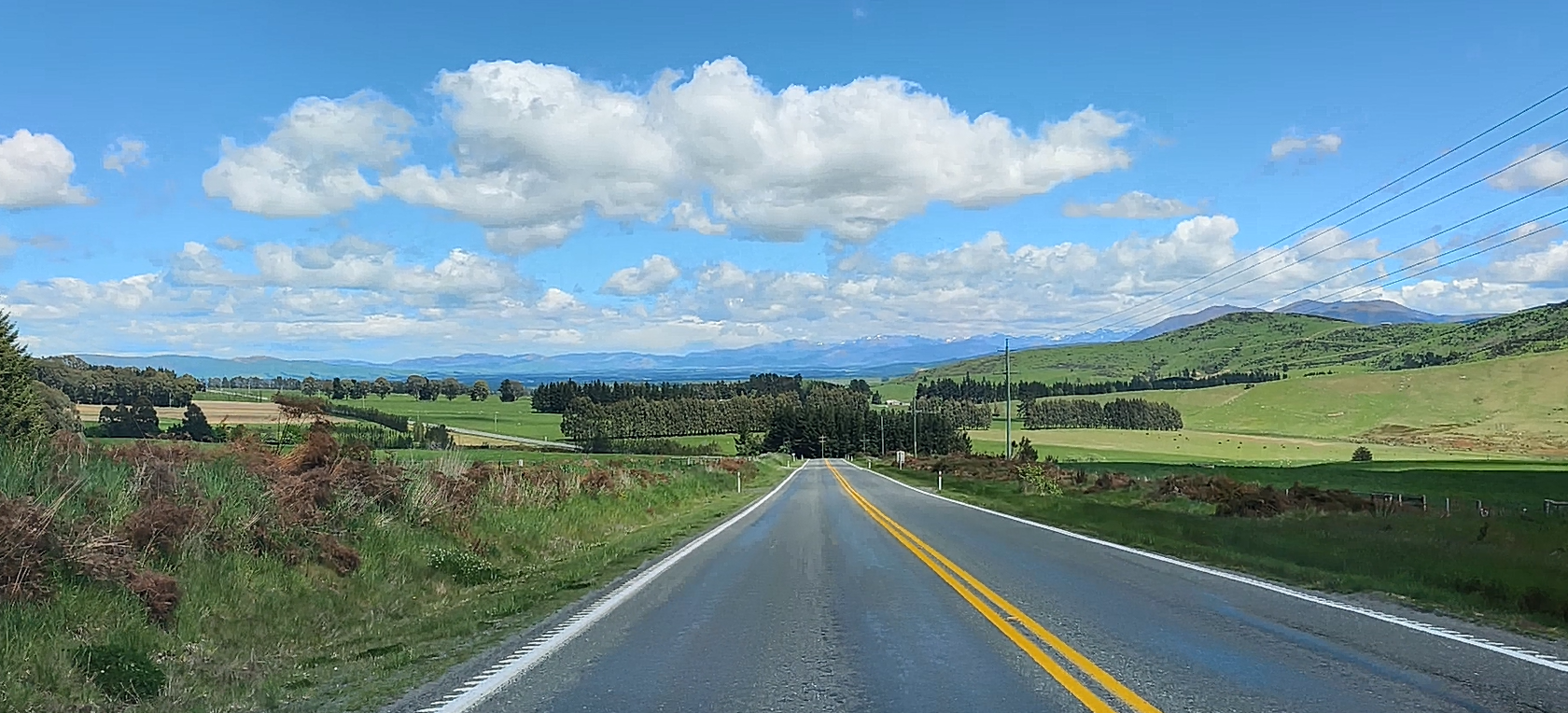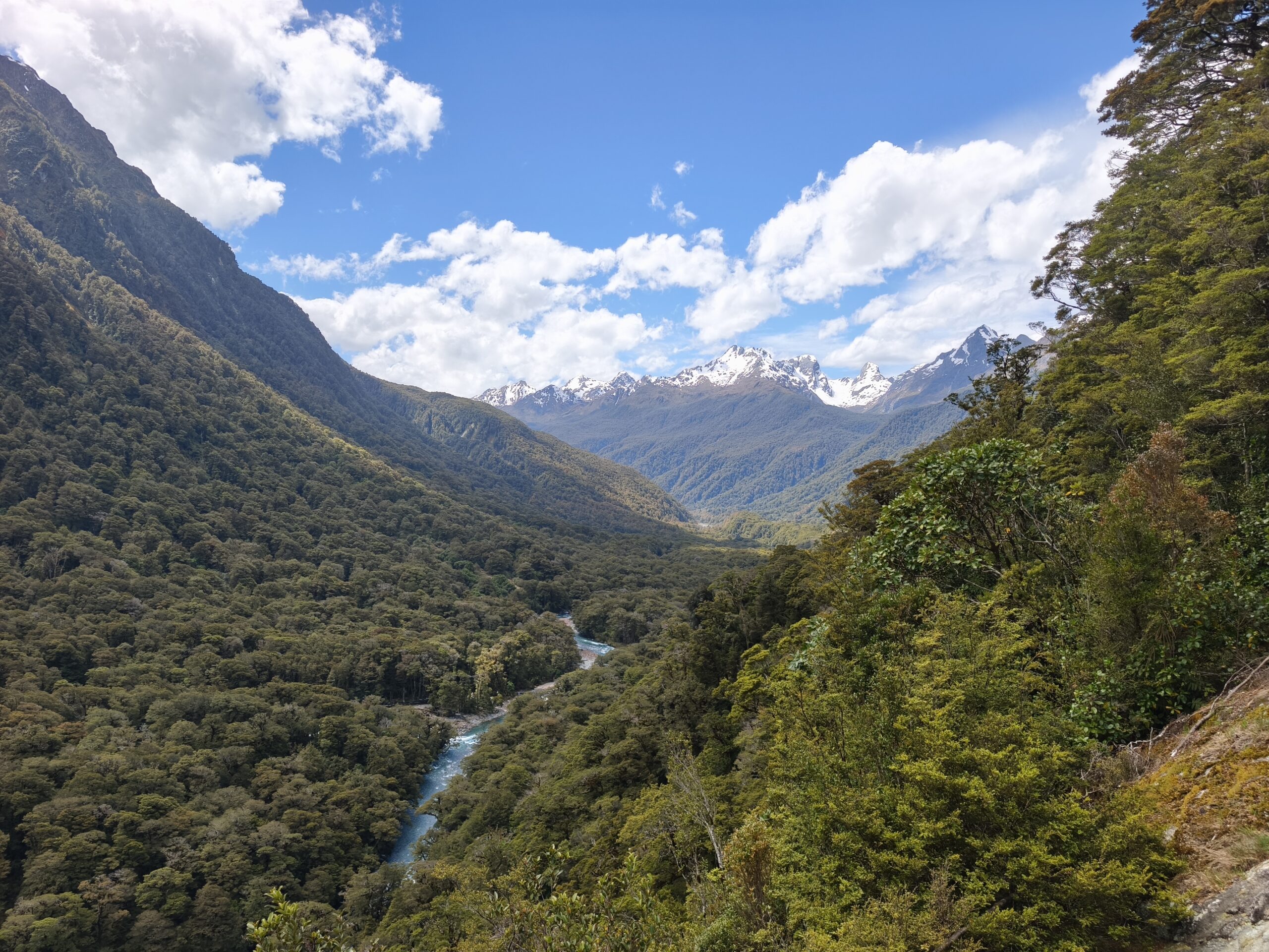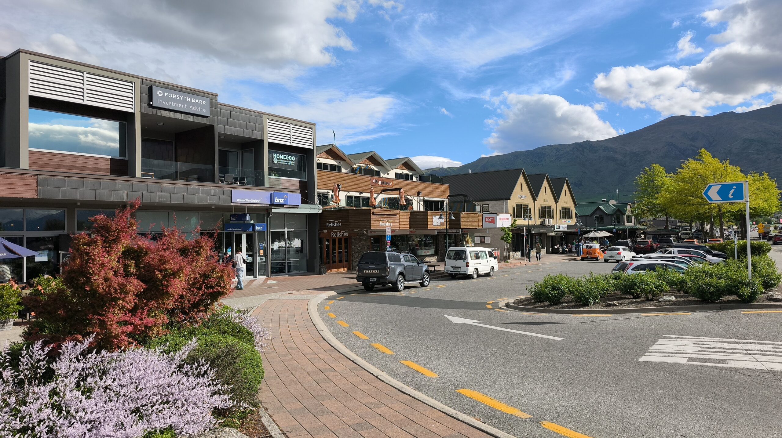 Llovió mucho la tarde-noche pasada, pero amaneció un día soleado que rápidamente calentó el frío de la mañana. Bajo a los jardines de la ciudad, tienen un parking que está muy cerca del centro, al que se llega paseando por la ribera del lago Wakatipu. Así que es un buen rato para volver a pasear por la calle principal y el borde del agua. Los barcos ya están saliendo para los turistas. Yo prefiero tomarme un café contemplando ese ir y venir. Son más de las 10 y media cuando regreso al coche. Voy a Te Anau, un recorrido primero al lado del brazo este del lago Wakatipu, para adentrarme luego en el amplio valle del río Mataura, verde, muy verde, me recuerda a la Isla Norte, con mucho ganado a ambos lados de la carretera. Quedan unos 70 kms cuando dejo la SH6 para coger la 94, que me lleva a Te Anau por el valle del río Oreti. La cara este de los Alpes Neozelandeses se ven cada vez más cerca. Tras el check-in voy a la localidad, a pasearla un rato antes de cenar. Mañana toca, de nuevo, madrugar