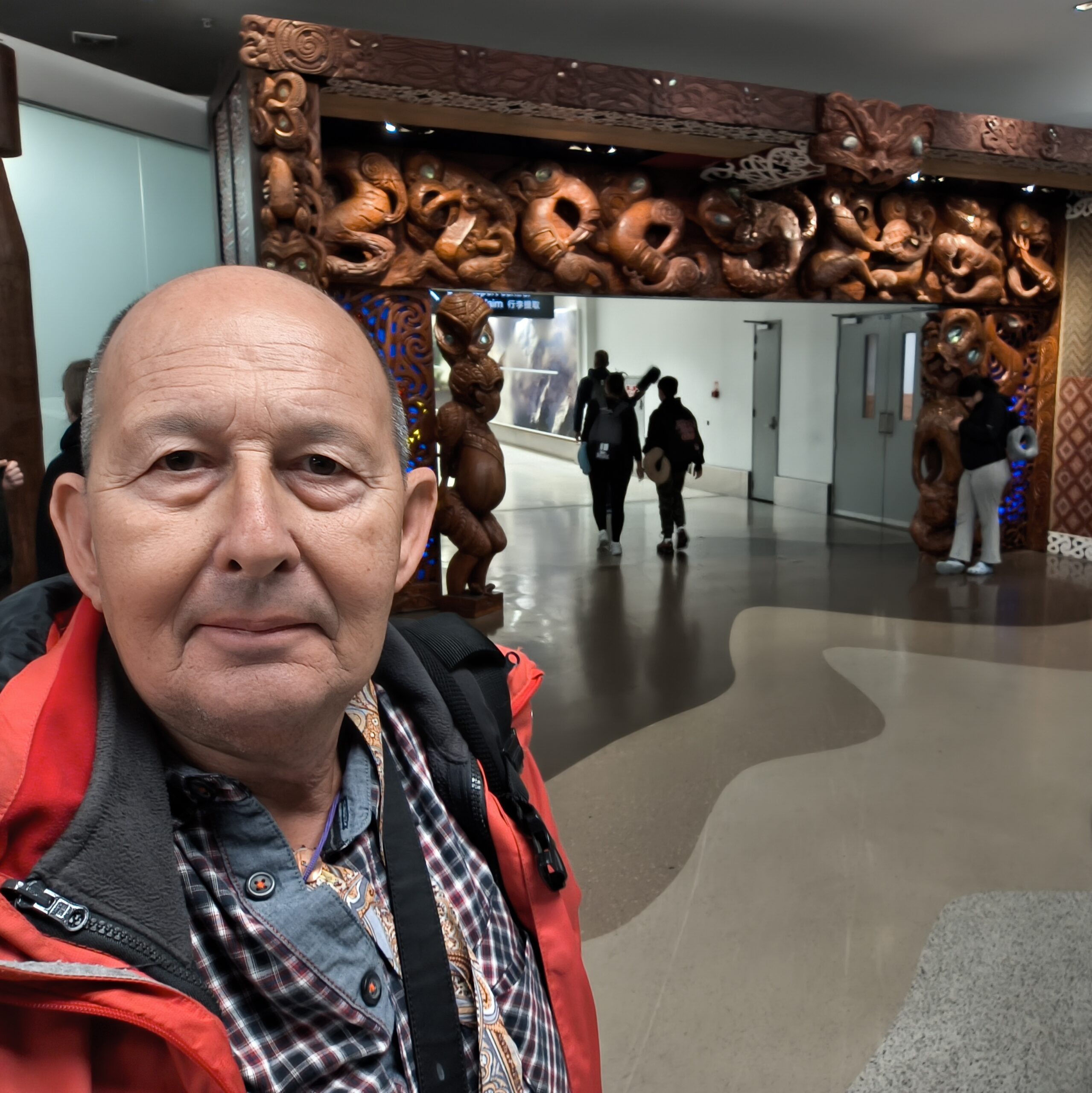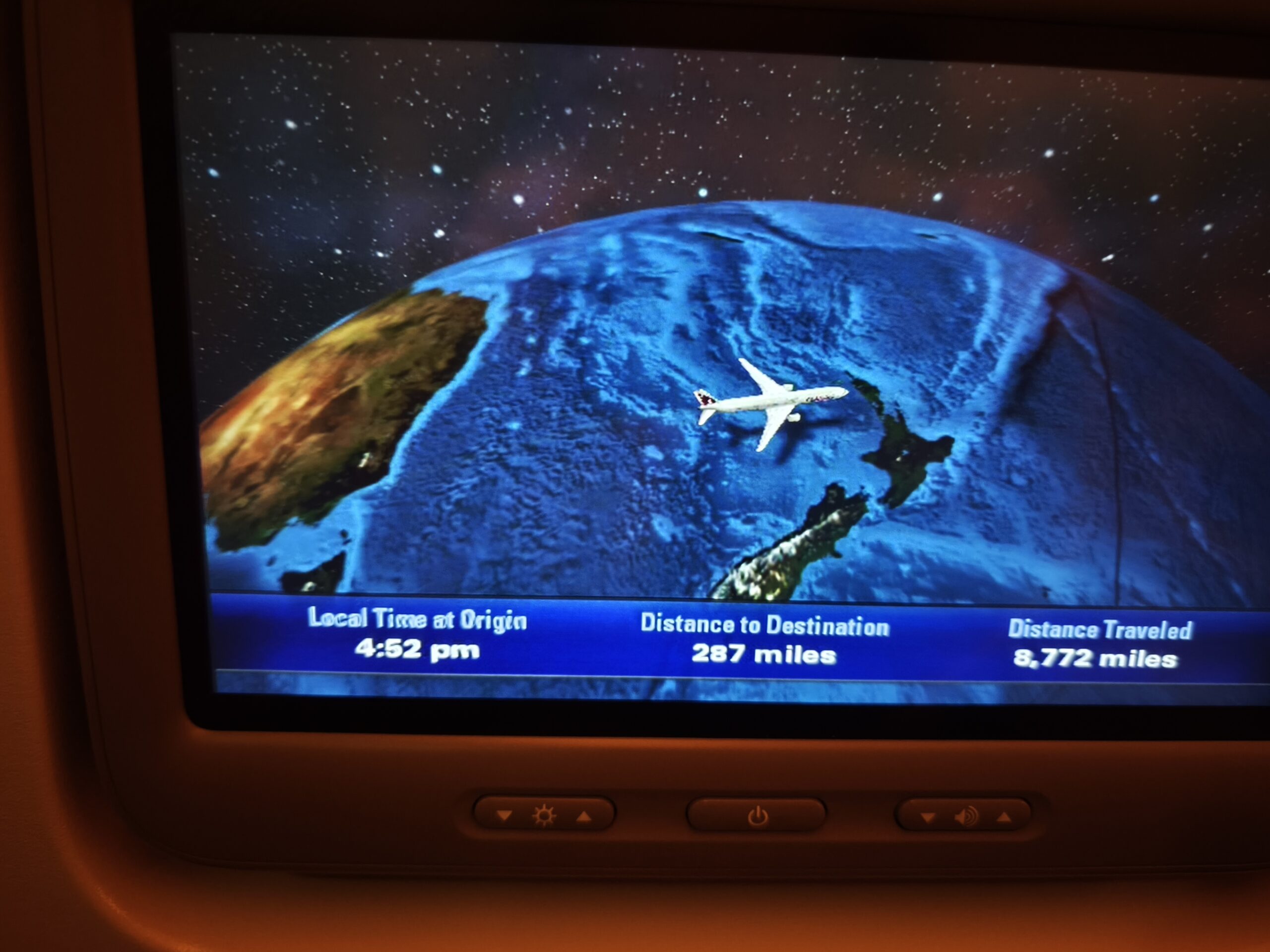 Me lleva Mª Luisa a Alicante, para coger el tren AVE a Madrid, acercarme con el tren de cercanías a la T4, facturar, control de pasaportes y seguridad y embarcar. Salida con Quantas a las 15:40 pm. 6 h y media. Escala y cambio de avión en Doha. 15 h y media a Auckland. Llegada a las 3:45 am (+2). Control de policía, recoger maletas y control del viajero. Shuttle bus al hotel.