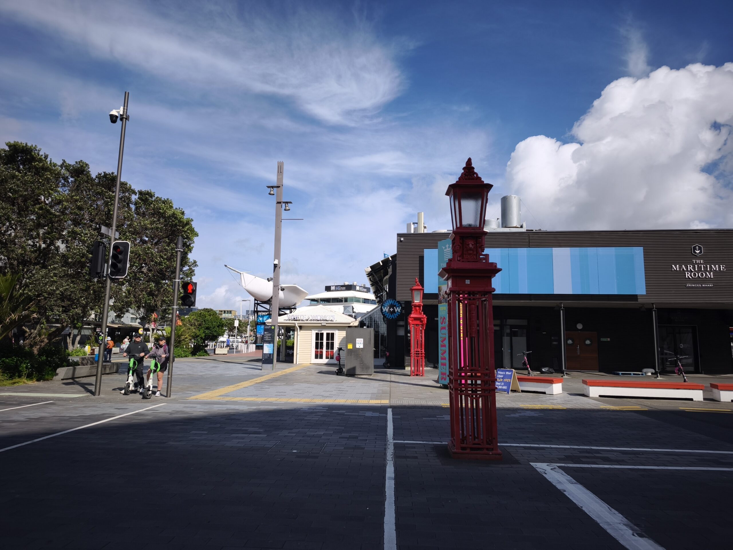 Los 2 primeros días los dedico a Auckland, 1,5M de hab., la ciudad de los volcanes. El primer día, tras llegar de madrugada voy en el SuperShutlle a Lylo Hostel, dejo las maletas y tomo un café, antes de coger el bus hacia el puerto. Paso toda la mañana en la zona de Quarter Harbour, Wynyard Quarter, Viaduct Harbour y como en la Lonja de Pescado, eliges el pescado y te lo cocinan, acompañado de buen tiempo en un agradable entorno musical. Vuelvo para el check-in. Toca descansar.