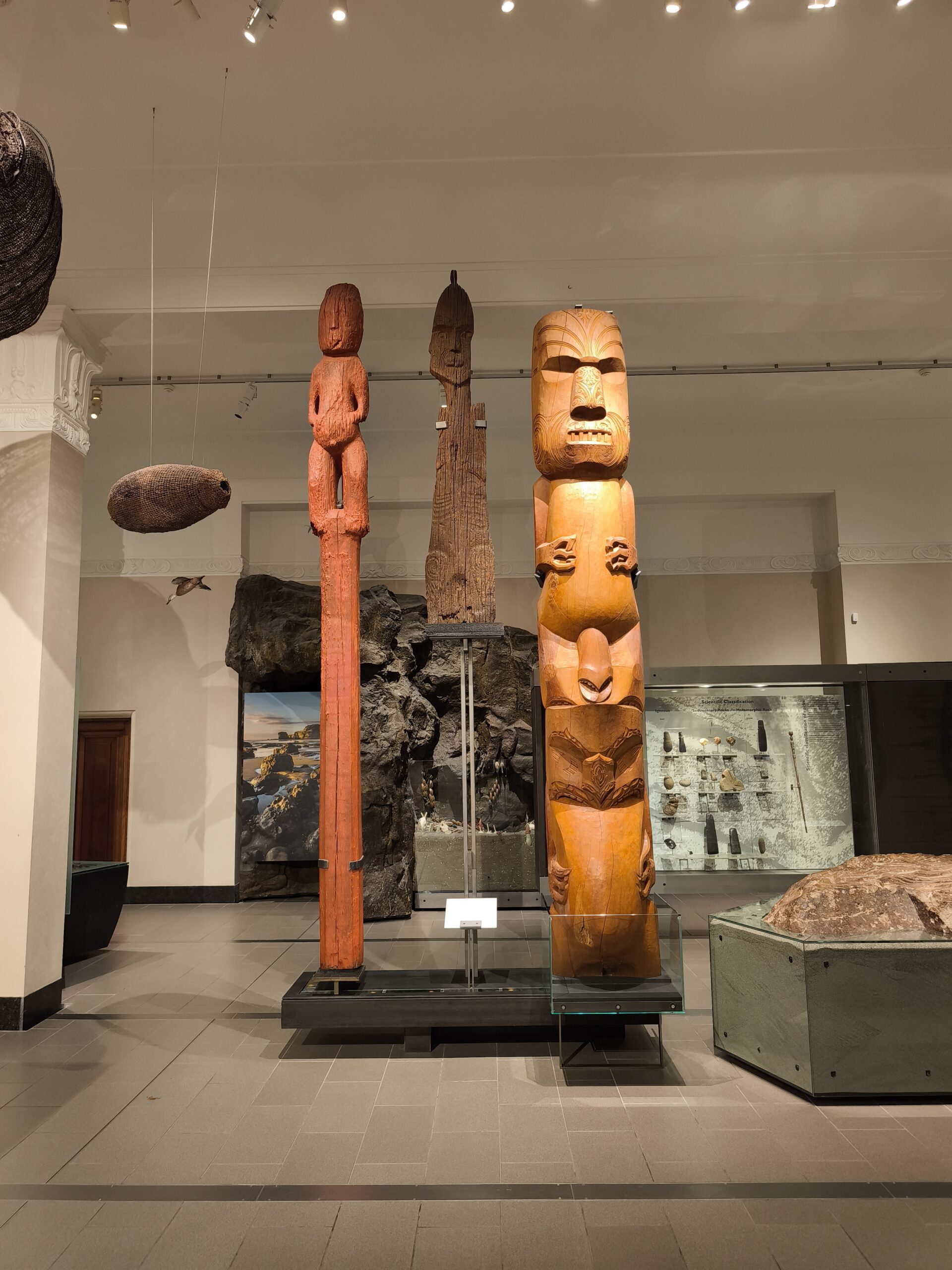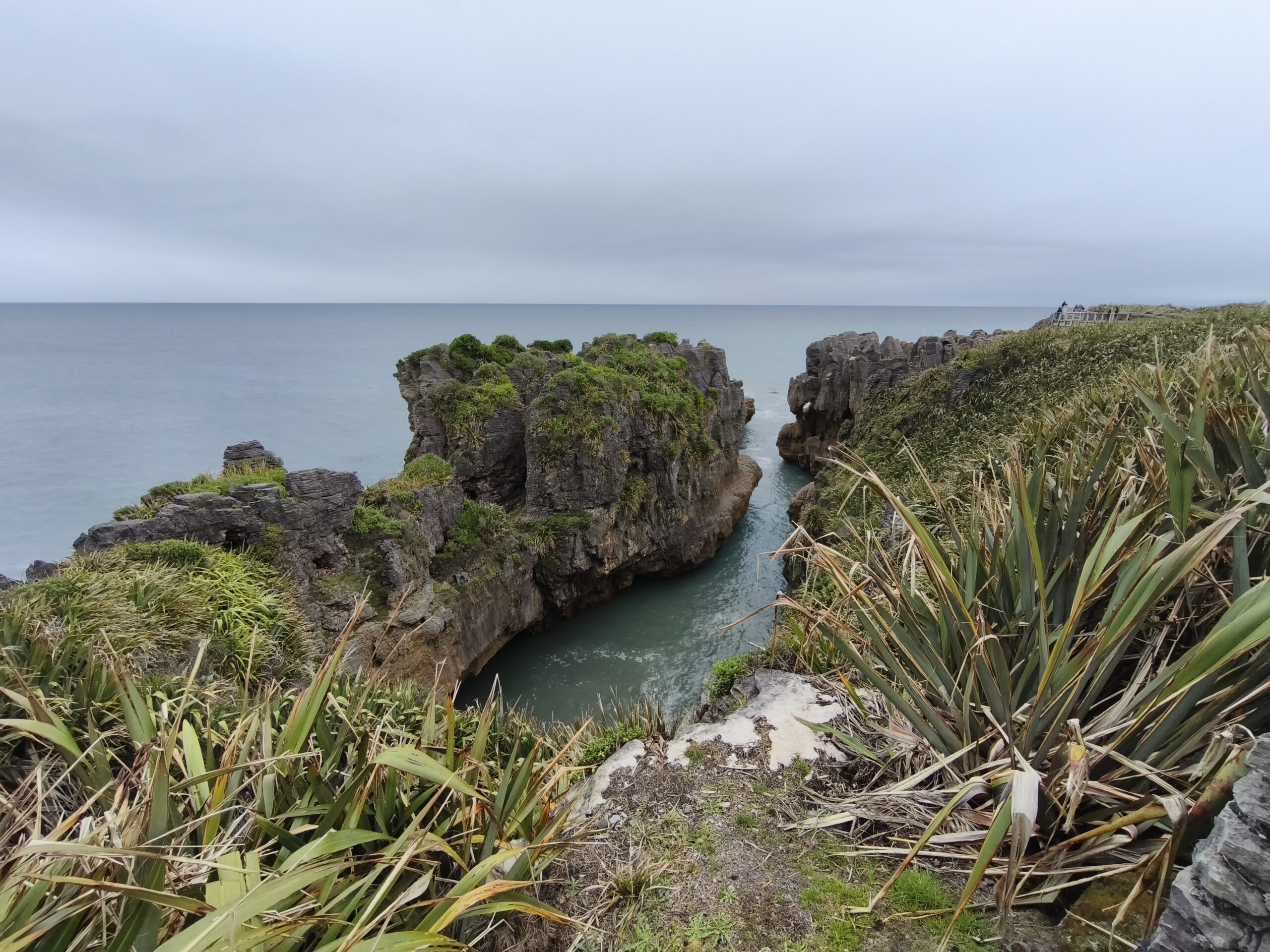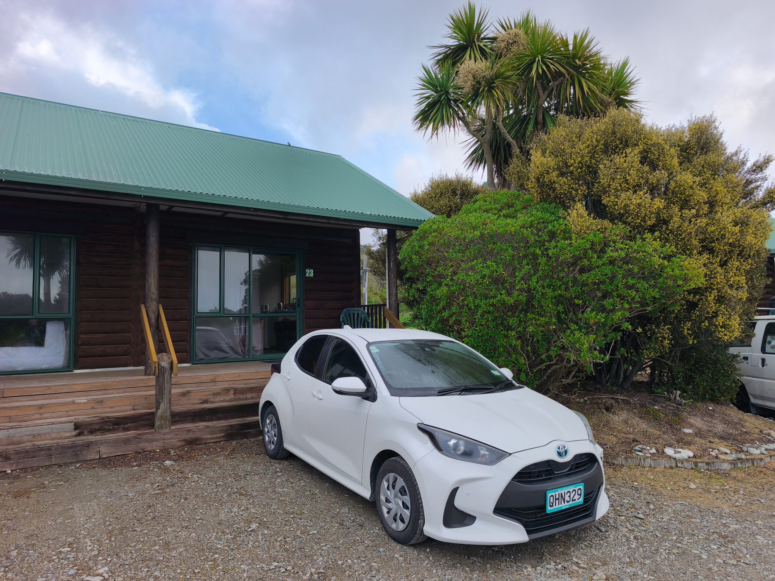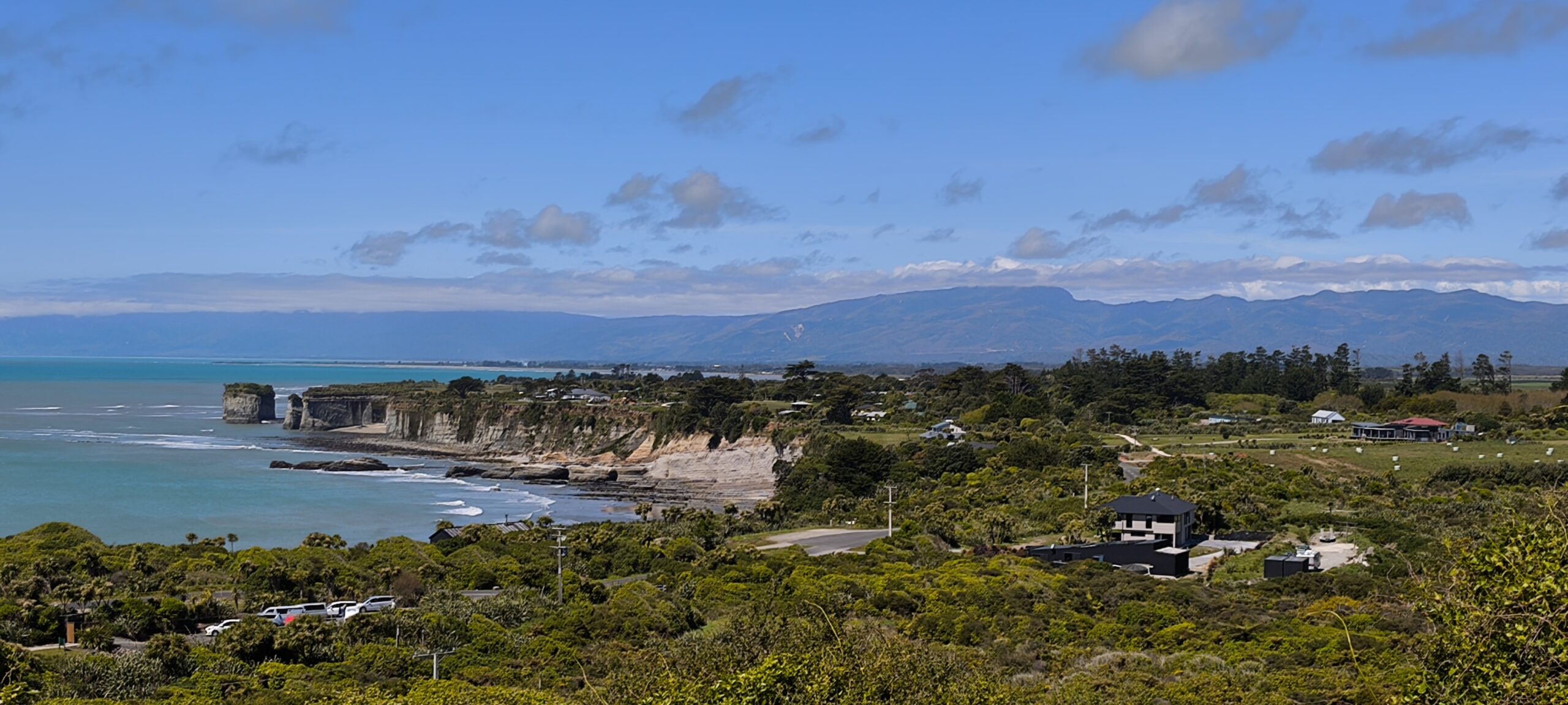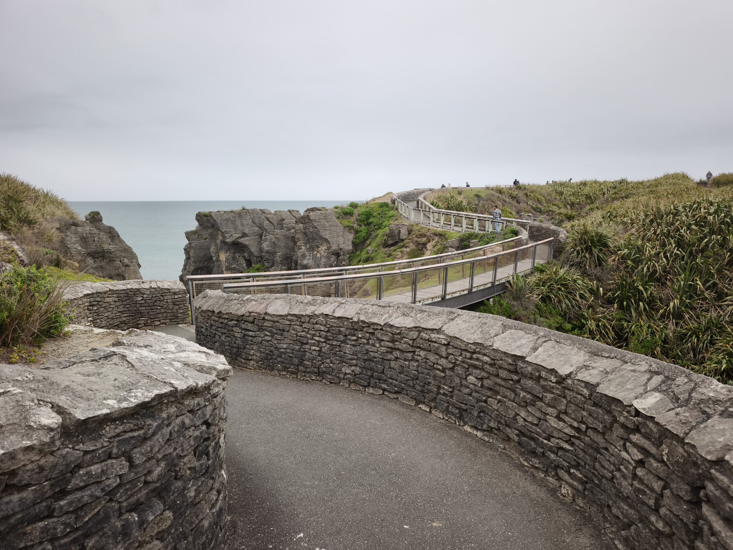 Desayuné bien y tras despedirme de los amables dueños y anfitriones salgo hacia el sur por la State Highway 6 (Great Coast Road). El día está cubierto y se espera lluvia. La parada de la mañana es en Pankace Rocks, un paisaje de piedra caliza con formaciones rocosas en forma de placas superpuestas, con agujeros que hacen de chimenea con marea alta, a los que se llega tras un corto paseo. Tomo café y empieza a llover continuadamente hasta llegar a Hokitika. Voy a comer algo y hacer tiempo. Tras hacer el chech-in en unas cabañas de madera, donde hoy me quedo, hago tiempo para ver si mejora la tarde. A las 6 salgo a Hokitika Gorge, aguas de un turquesa brillante bordeadas de acantilados de piedra caliza blanca y una exuberante selva tropical, a media hora de camino hacia el interior, para verlo. Y a descansar, que voy sumando días sin parar. Hay talleres de artistas que trabajan el «pounamu», el hueso y el vidrio.