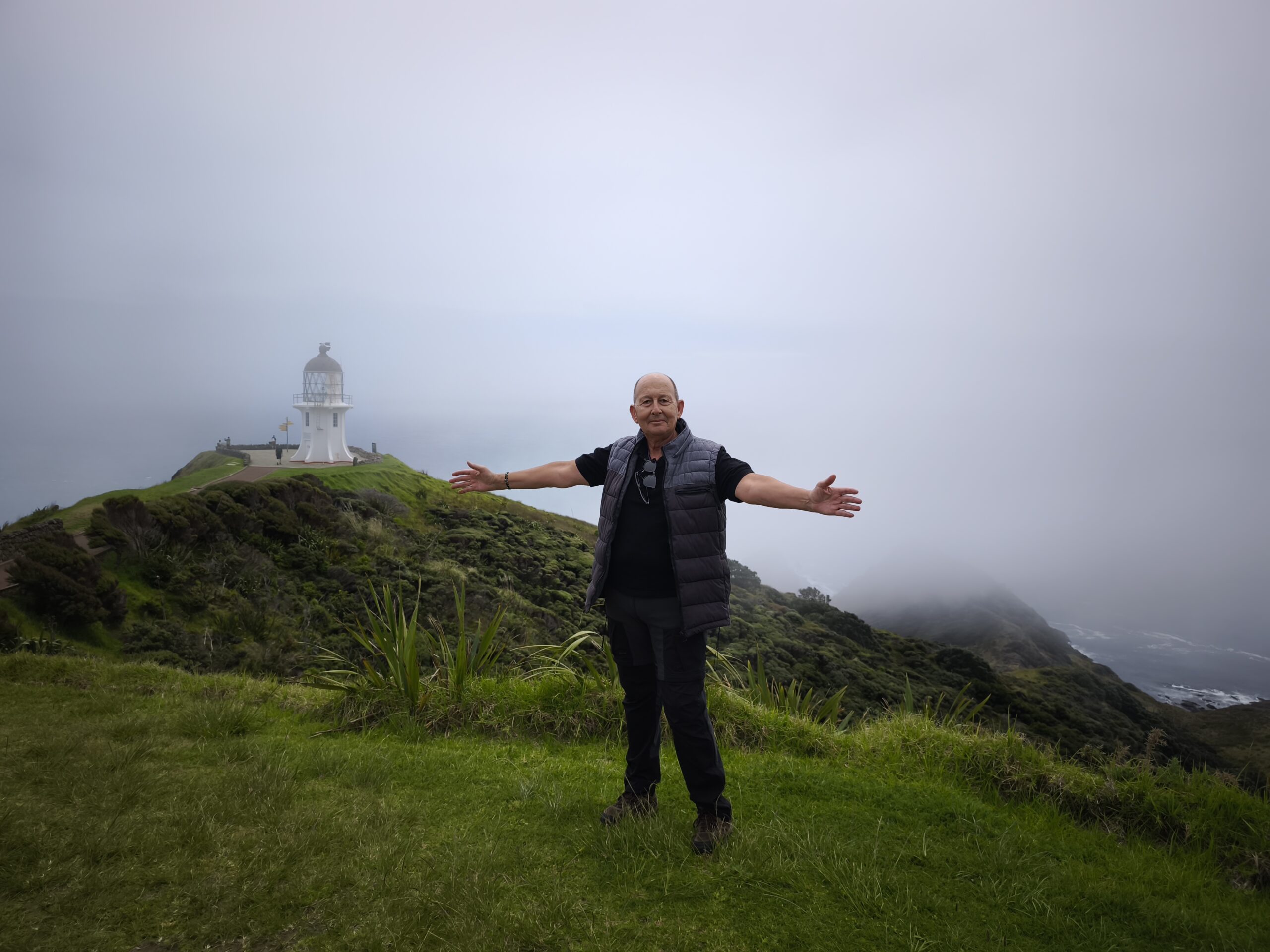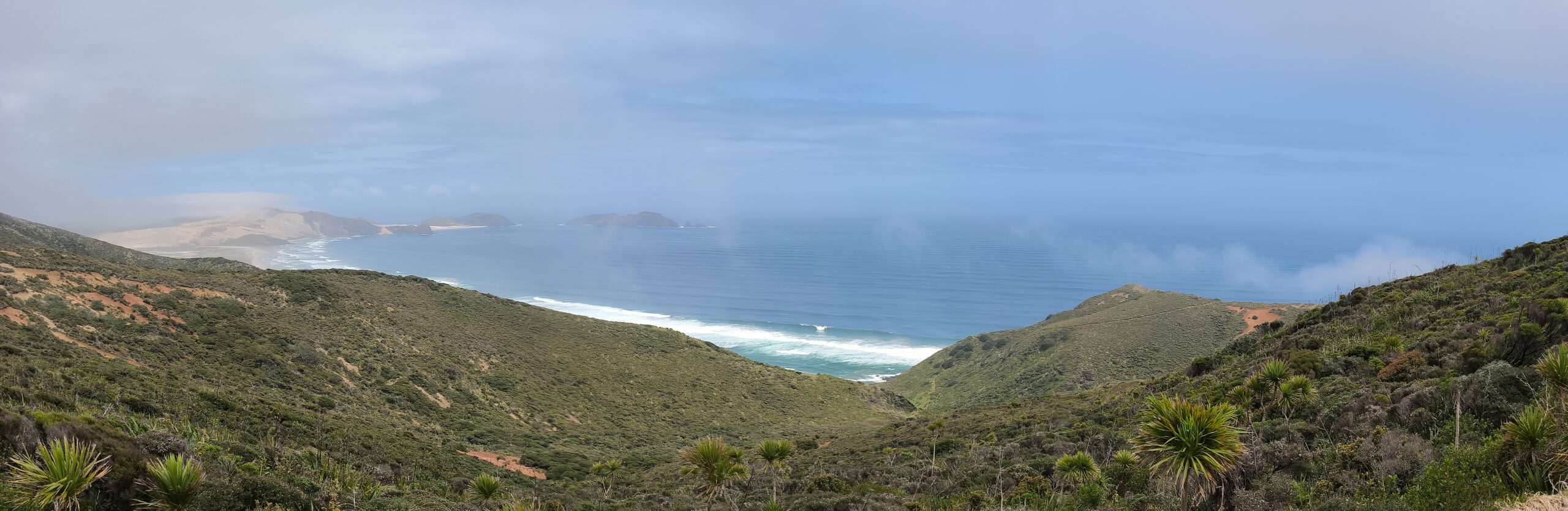 He descansado mejor. Son las 8:30 am cuando paro a desayunar en el pueblo, frente al mar. Hoy el día es largo, subo (y bajo) a Cape Reinga, la punta septentrional del país. Desde el faro es posible observar el encuentro entre el Mar de Tasmania y el Océano Pacífico, aguas turbulentas que se generan por el choque entre ellas. Para los maoríes es el “lugar de salto de los espíritus” hacia el más allá, el inframundo. Además paro (a la ida) en Sand Dunes, grandes dunas muy populares entre los jóvenes. Y al regreso me acerco a pisar la Ninety Mile Beach, 88 km de playa que parece no tener fin, inmensa. Muy valorada por sus olas, arena y sol, adecuada para el surf, baño y pesca. Tengo suerte, el tiempo acompaña para disfrutar del día.