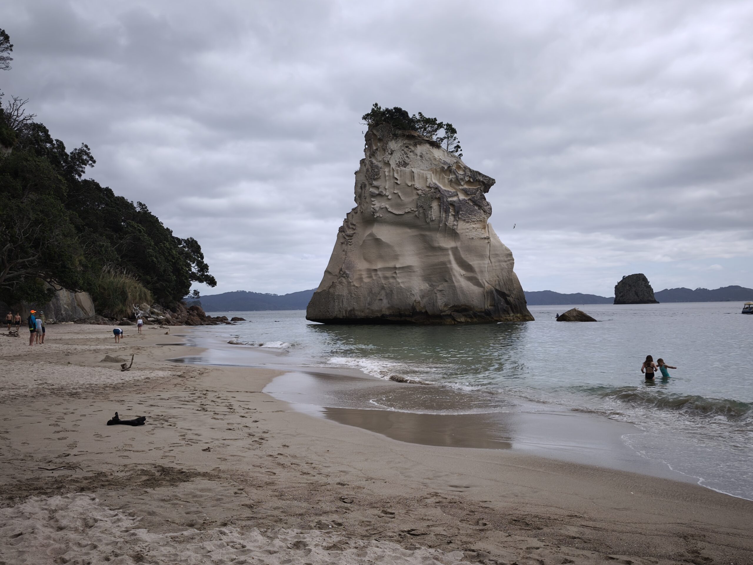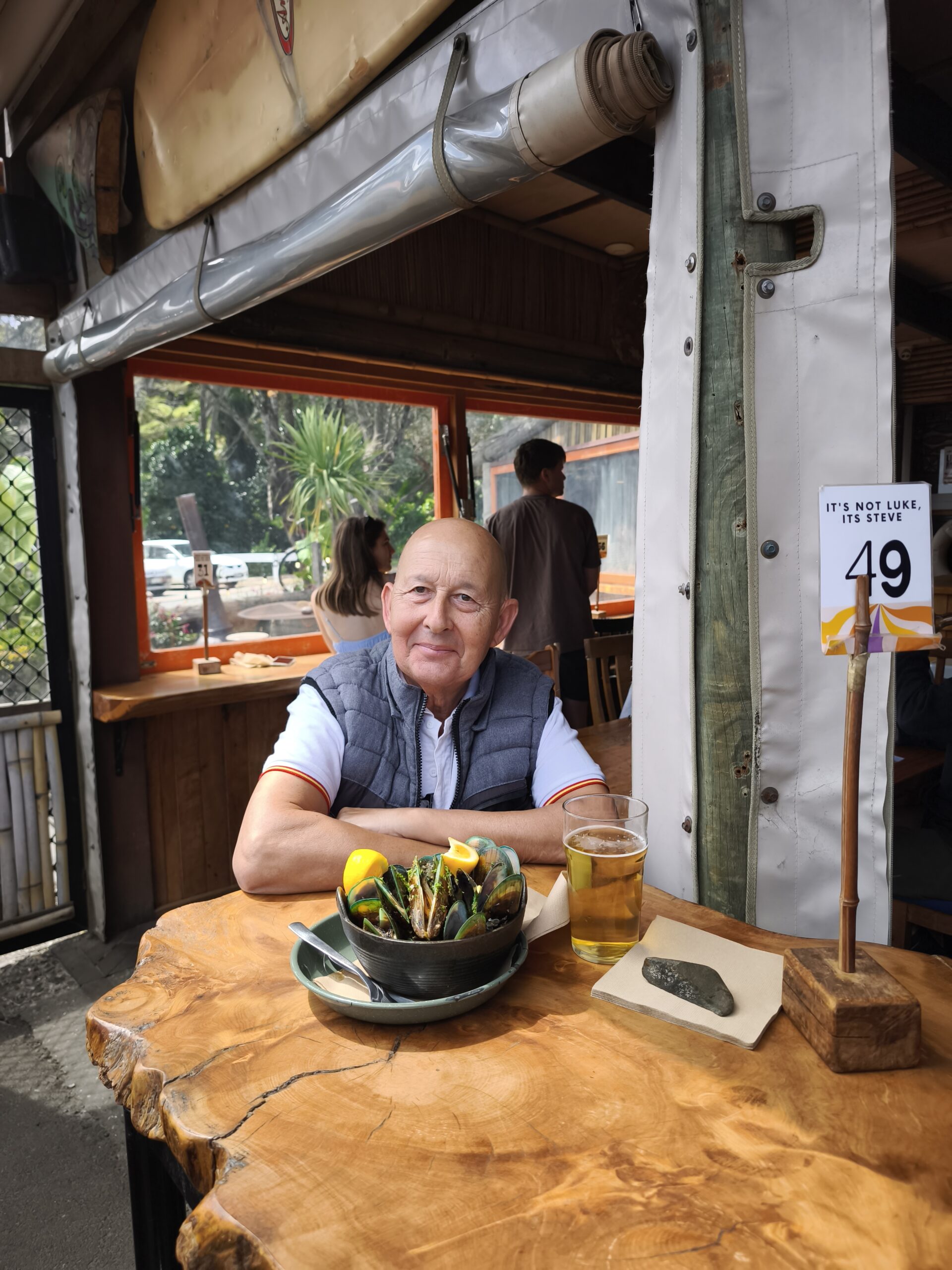 Hoy voy a Cathedral Cove, muy popular, allí donde se rodó la película de Las Crónicas de Narnia. Cerca está Hot Water Beach, esta playa tiene una característica muy especial y es que durante la marea baja, dos horas antes y después (momento en el que es accesible), si realizas un agujero en la arena, con tu pala o una que puedes alquilar allí, en la parte más cercana a la orilla, de él brota agua caliente, producto de la ubicación de la playa en una zona de gran actividad volcánica. Va bien el día, así que decido subir a Kuaotunu para ver si playa y comerme unos mejillones verdes en Lukes Kitchen, allí donde van todos a comer y escuchar música. Son más de las 4 de la tarde y cambia el día, buen momento para descansar.