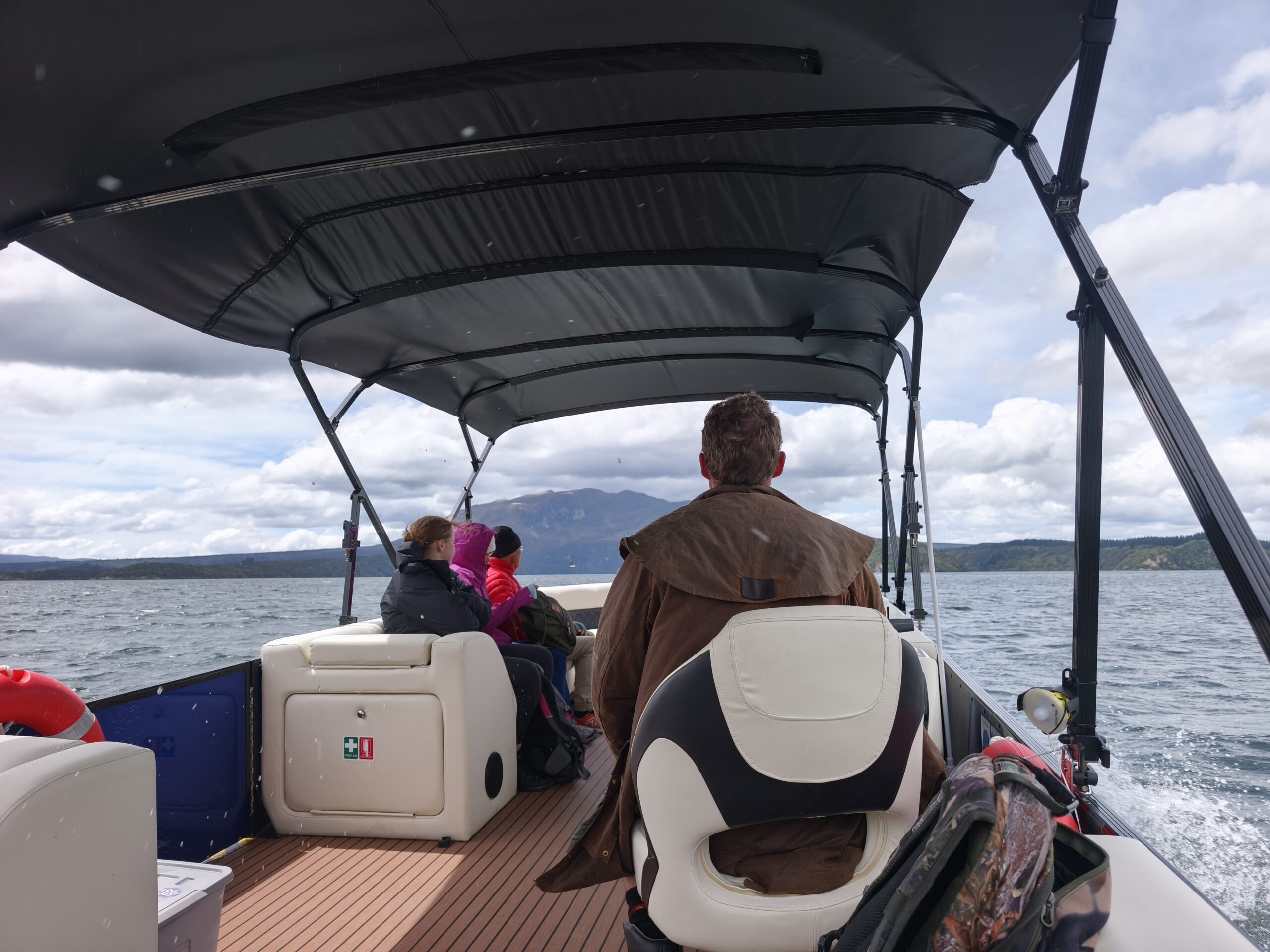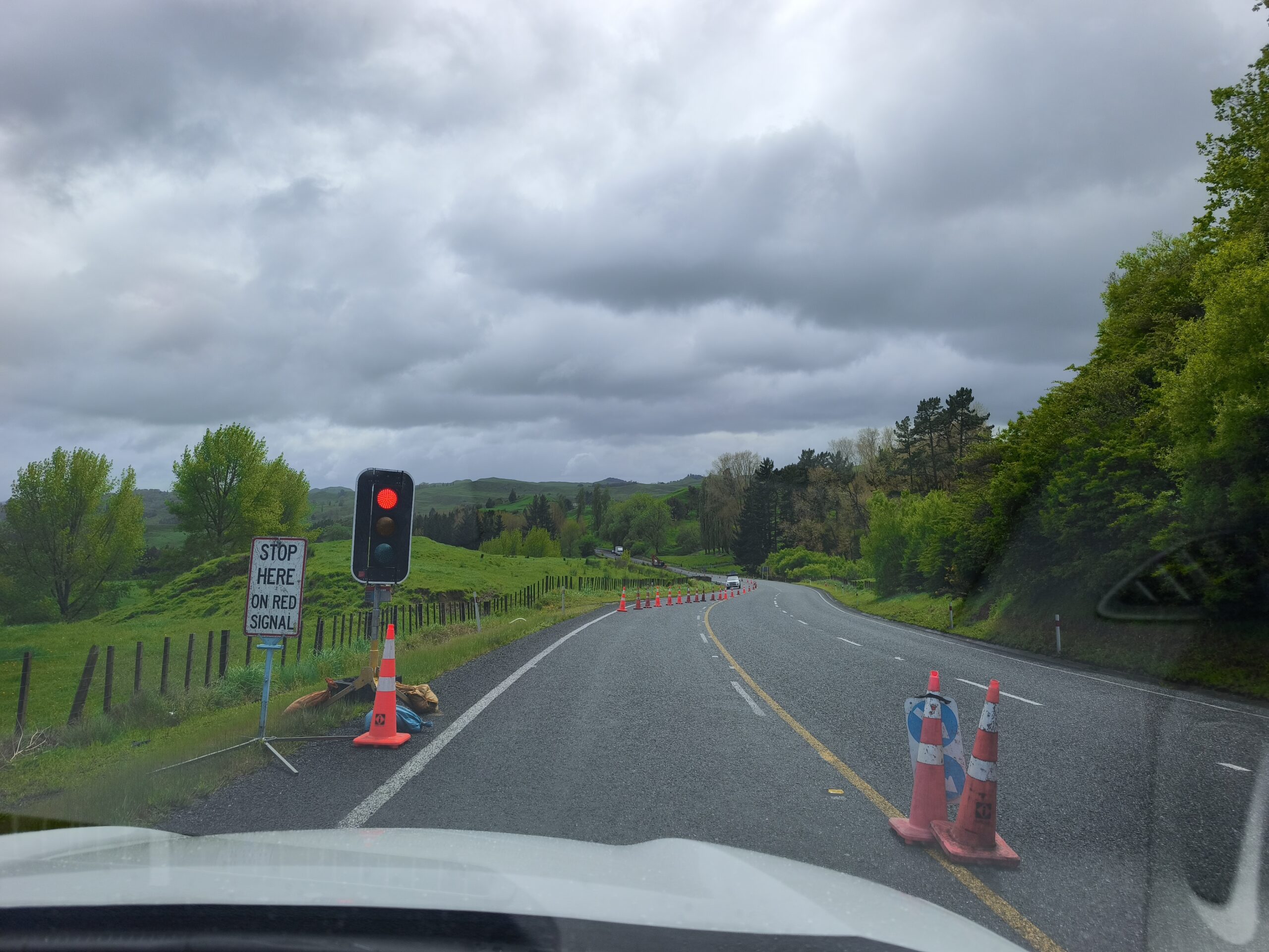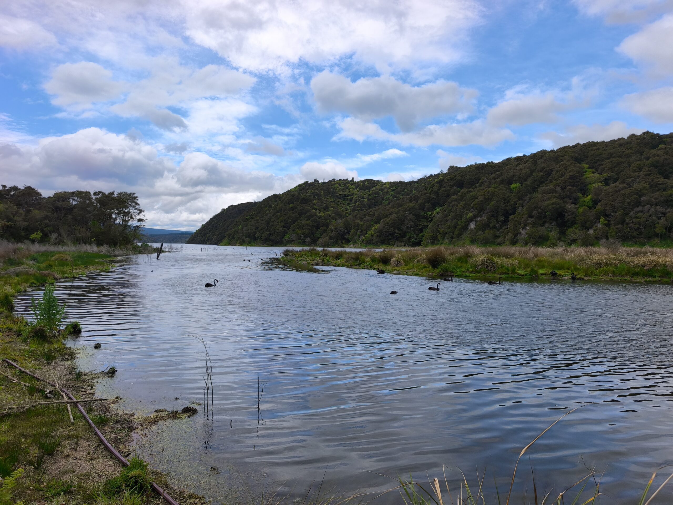 verlas. Paro en Taupo a descansar y tomar un café. Llueve intermitentemente. Llego a Waimarino con lluvia y frío. Así que día de descanso.