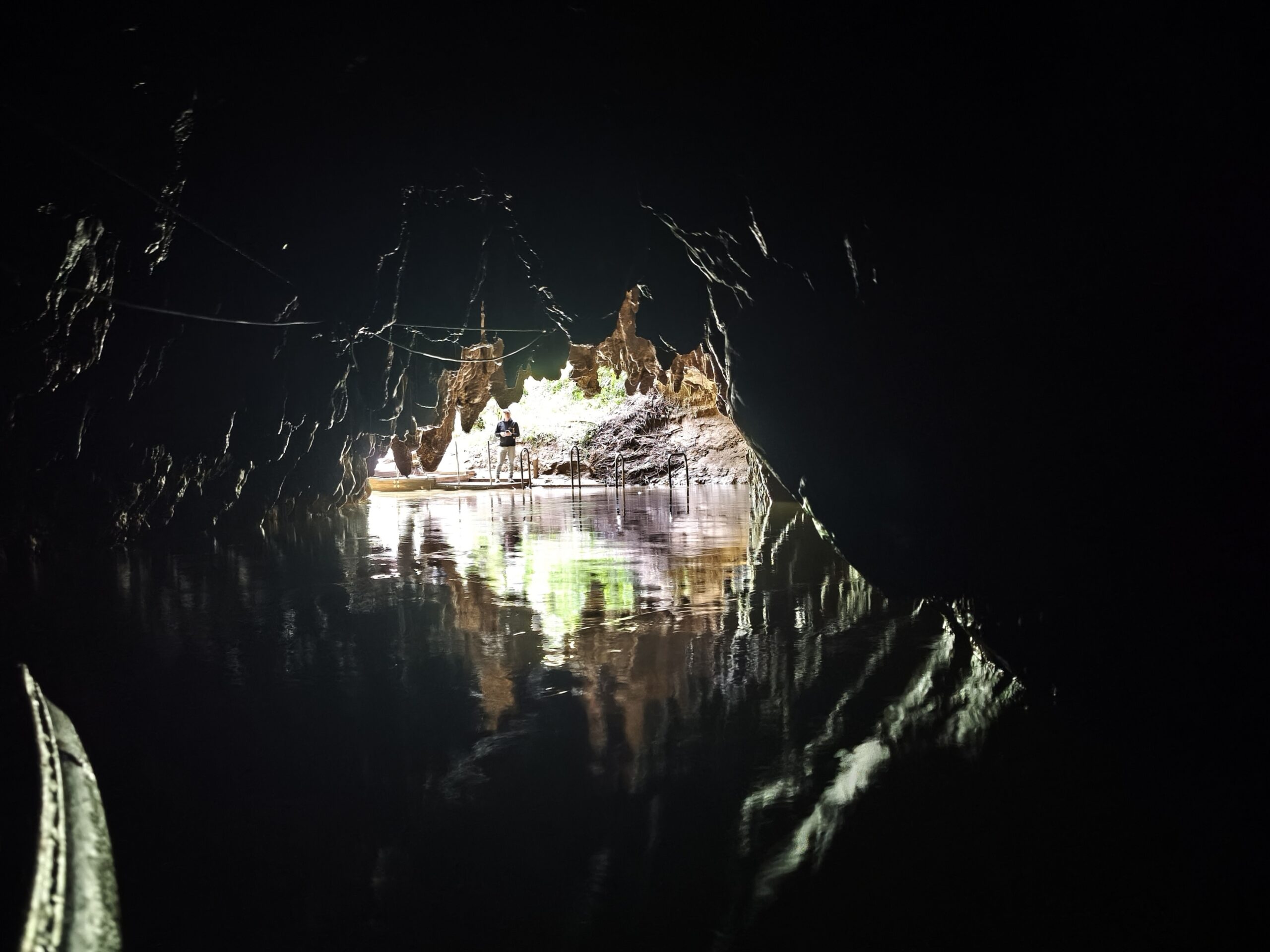Día de descanso. Amanece cubierto, frío y lluvioso. Tenía la intención de acercarme a Tongariro National Park, aquí donde se encuentra la famoso trekking Tongariro Alpine Crossing, que se hace por las tierras de Mordor, donde vive Sauron, pero el tiempo no acompaña. Sin prisa salgo para Waitomo. Paro a repostar y tomar café en Te Kuiti. Los parajes de prados con ganado y bosques se repiten detrás de cada colina y curva del camino, con lluvia reiterada. Voy sin prisa. Ceno en el Lodge de Waitomo. Tras desayunar me acerco a Waitomo Caves. Visito primero esta cueva. Pequeña, tras un corto recorrido el grupo de sube a una barca y, a oscuras, vas viendo el bajo techo iluminado por miles de luciérnagas (es lo más llamativo del recorrido). Cerca está la segunda cueva, Ruakuri Cave. El recorrido de hace bajando por una rampa circular en espiral hasta llegar a la entrada. Se ven pasillos estrechos y altos (5-7 m), de piedra caliza de las excavaciones. Hay cascadas subterráneas, al final un amplia sala de estalactitas y un pasillo de luciérnagas. Aquí es donde se puede hacer rafting. La cueva tiene un significado cultural para los maoríes locales, y su nombre, “Guarida de Perros«, proviene de una antigua leyenda. Tras comer a la salida pongo rumbo a Matamata.