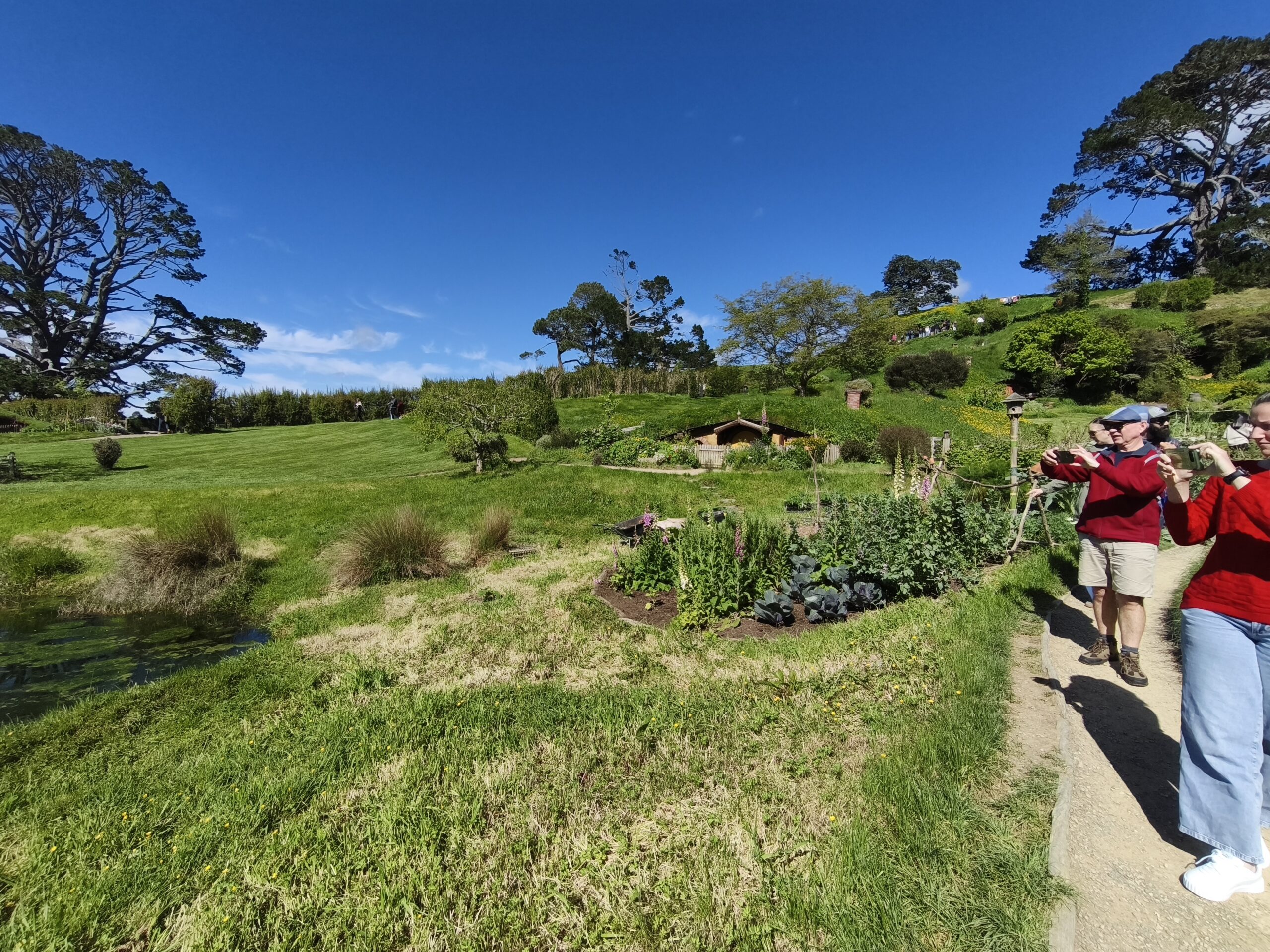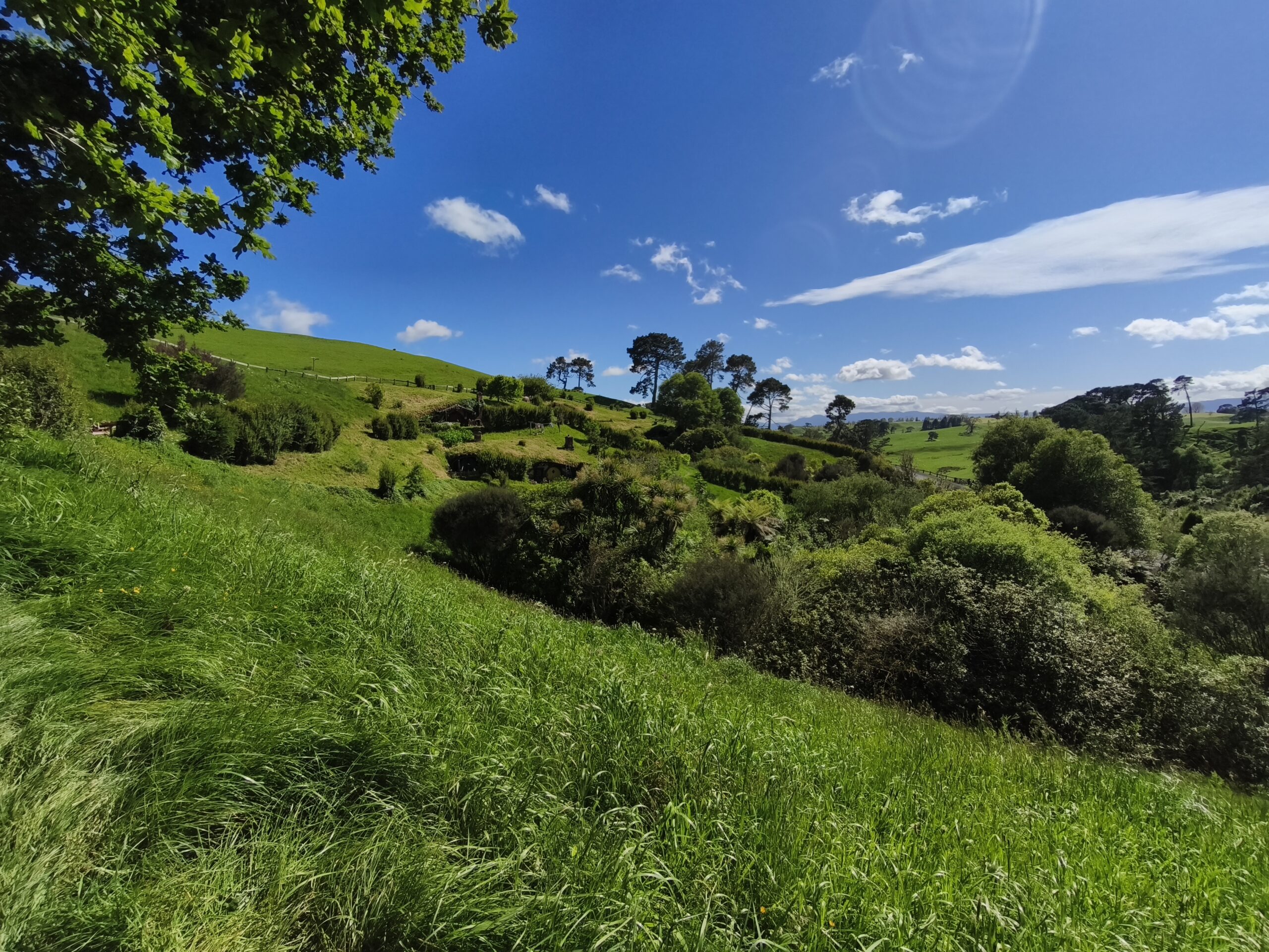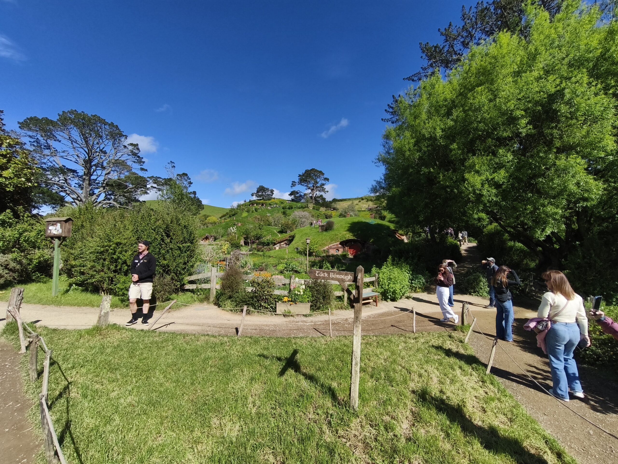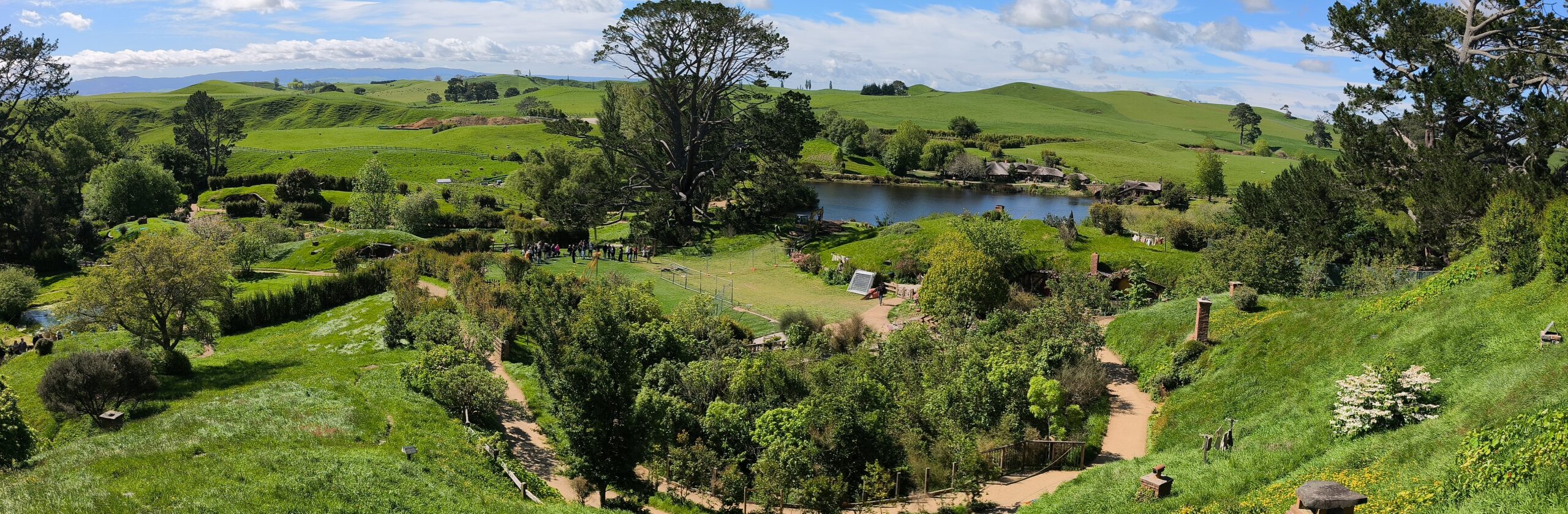 Hoy hago la visita a Hobbiton Set Movie, allí donde se rodaron diversas escenas de las películas de Peter Jackson. La Comarca™, la Tierra Media, hogar del set de rodaje de Hobbiton, el mágico mundo de los Hobbits, donde se rodaron las trilogías de El Señor de los Anillos y El Hobbit. Un negocio inacabable. Está muy bien cuidado y organizado. A quienes les gustan los libros y las películas disfrutarán de estos entornos. La visita se hace con guía durante 2h, tras llevarte en bus y en grupos de unas 40 personas a unos 10-12 minutos del visitor center. El guía va contando pormenores de las películas, parando en diversos sitios del recorrido, el cual finaliza en «Green Dragon» tomando una cerveza. Tuve suerte, ya que el día ha acompañado. Pongo rumbo a Auckland, parando en el camino a comer algo y tomar un café.