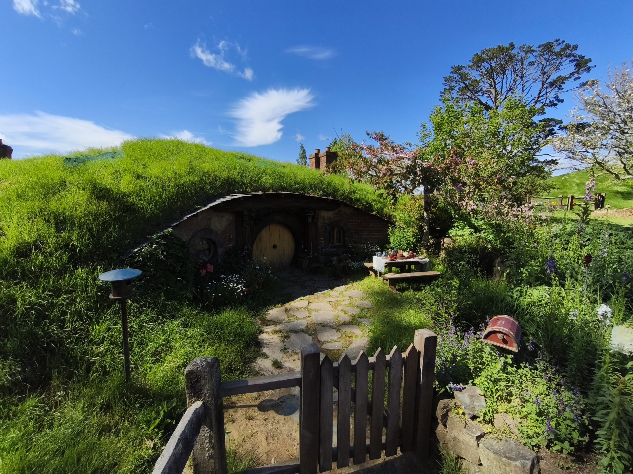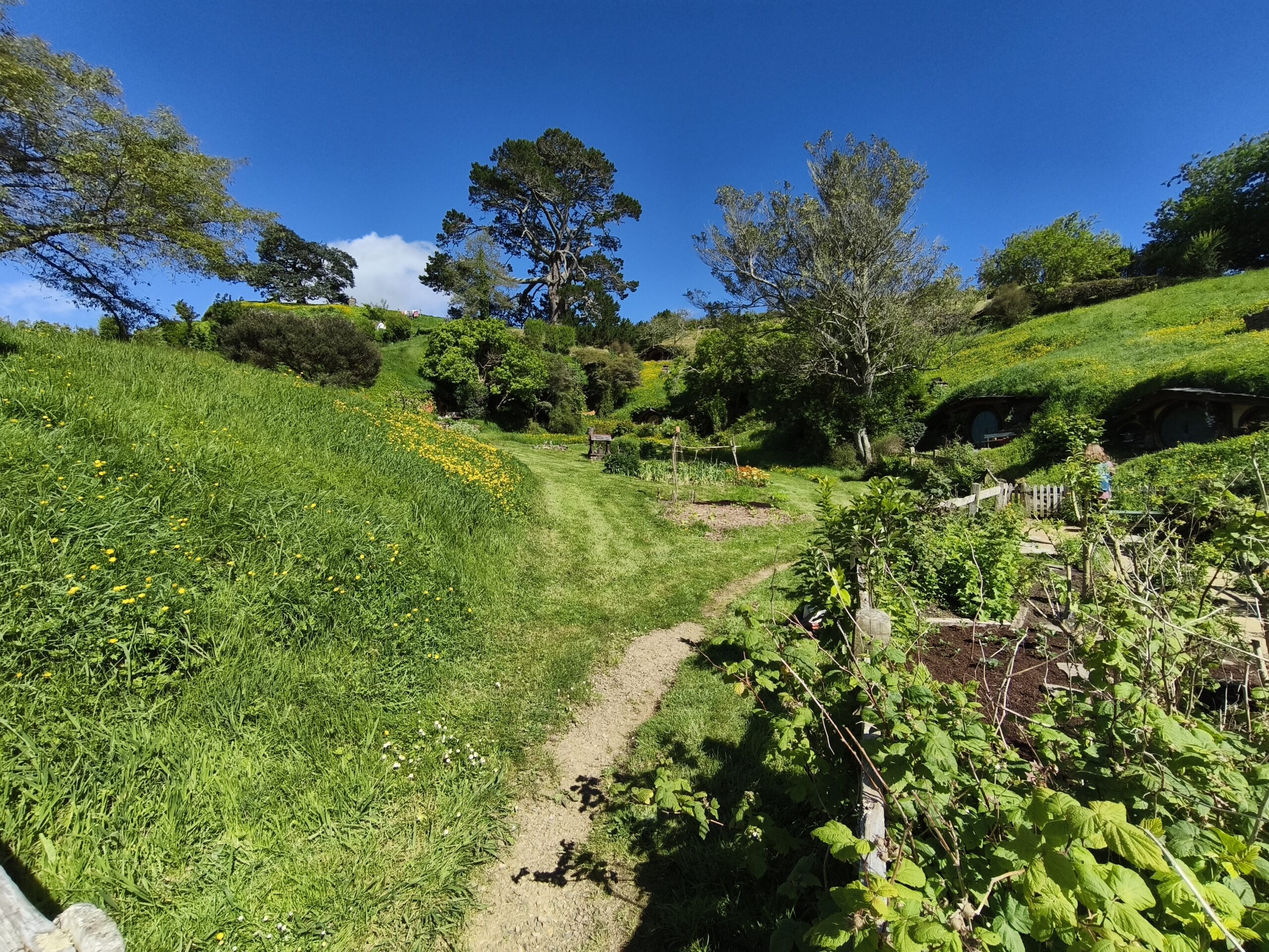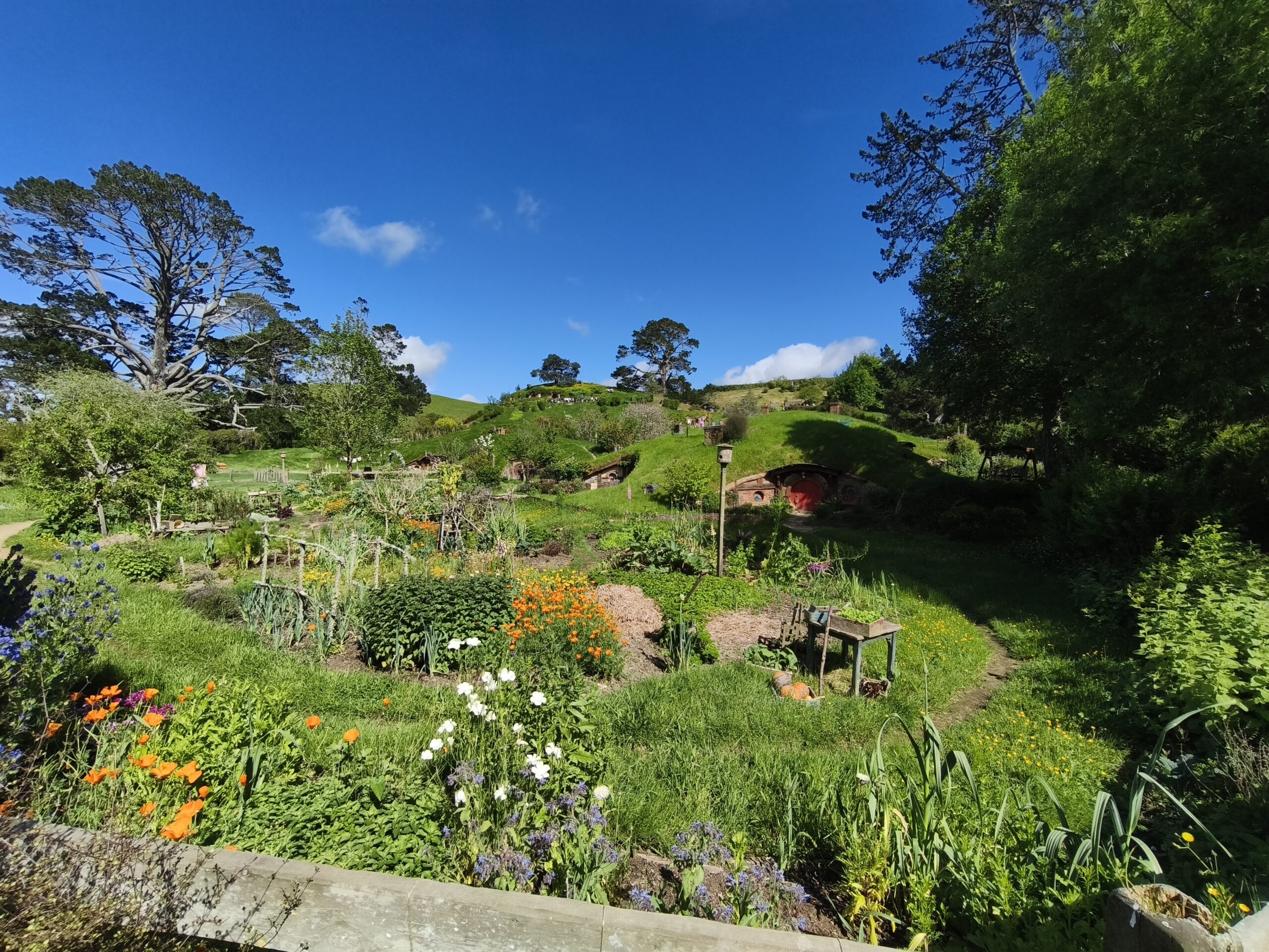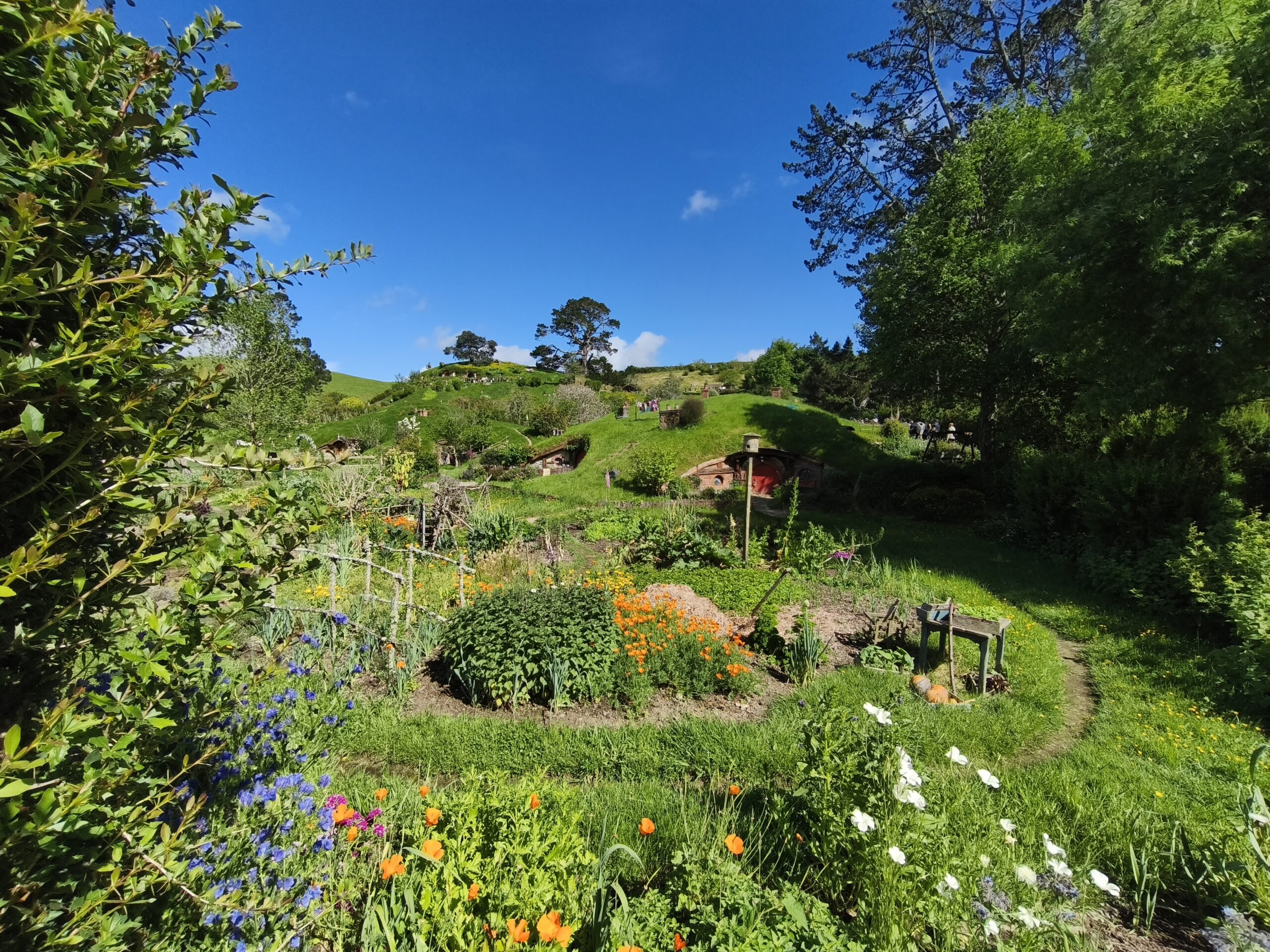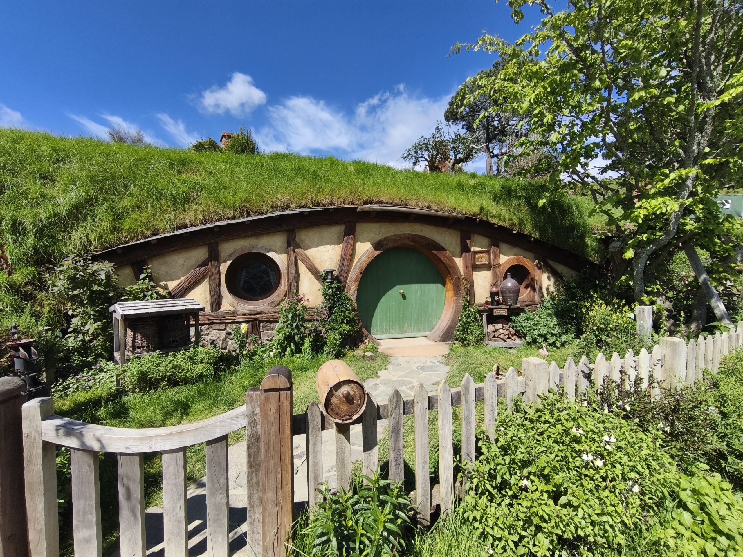 Hoy hago la visita a Hobbiton Set Movie, allí donde se rodaron diversas escenas de las películas de Peter Jackson. La Comarca™, la Tierra Media, hogar del set de rodaje de Hobbiton, el mágico mundo de los Hobbits, donde se rodaron las trilogías de El Señor de los Anillos y El Hobbit. Un negocio inacabable. Está muy bien cuidado y organizado. A quienes les gustan los libros y las películas disfrutarán de estos entornos. La visita se hace con guía durante 2h, tras llevarte en bus y en grupos de unas 40 personas a unos 10-12 minutos del visitor center. El guía va contando pormenores de las películas, parando en diversos sitios del recorrido, el cual finaliza en «Green Dragon» tomando una cerveza. Tuve suerte, ya que el día ha acompañado. Pongo rumbo a Auckland, parando en el camino a comer algo y tomar un café.