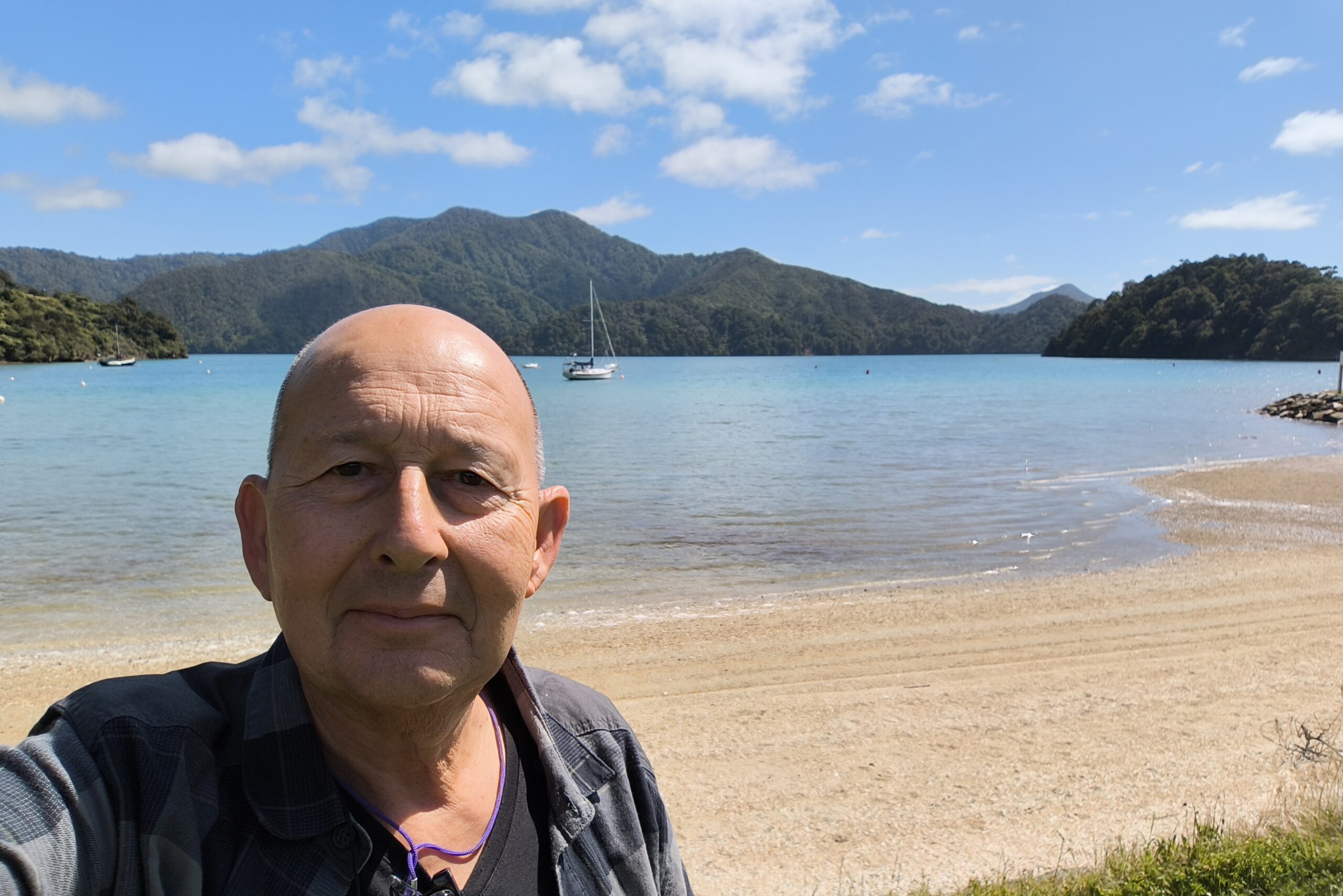 Después de tomar un café en Encounter (lugar de encuentro para salidas al mar), inicio el camino del día. Voy hacia el norte, junto al mar, por el este y la cadena montañosa del Manahau, por el interior hasta Bienheim. Ahora por el interior a Picton, entre verdes valles y bosques. La idea de seguir esta ruta es poder recorrer la Queen Charlotte Drive, carretera escénica serpenteante a cada metro recorrido, 40 kms muy revirados con algunos miradores y bahías del mar, donde me detengo a disfrutarlo y descansar (PictonScenicOverlock, NgakutaBay, MomorangiBay). En Havelock (aquí acaba laQCD) paro a descansar, comer algo y tomar un café, Ahora para el interior entre montañas y valles con mucho ganado vacuno. Son las 2 de la tarde cuando llego a Nelson. Tras registrarme en el Motel y descansar, salgo a ver la Catedral y las calles Trafalgar St y Hardy St del centro. Me he acercado a la joyería Jens Jensen, donde se hizo el anillo de la película (no les he visto muy animados, no tienen expuesta ni siquiera una réplica del mismo). Decido volver hacia la playa y pasear un rato por ella, va cayendo la tarde y se levanta mucho viento. Toca descansar.