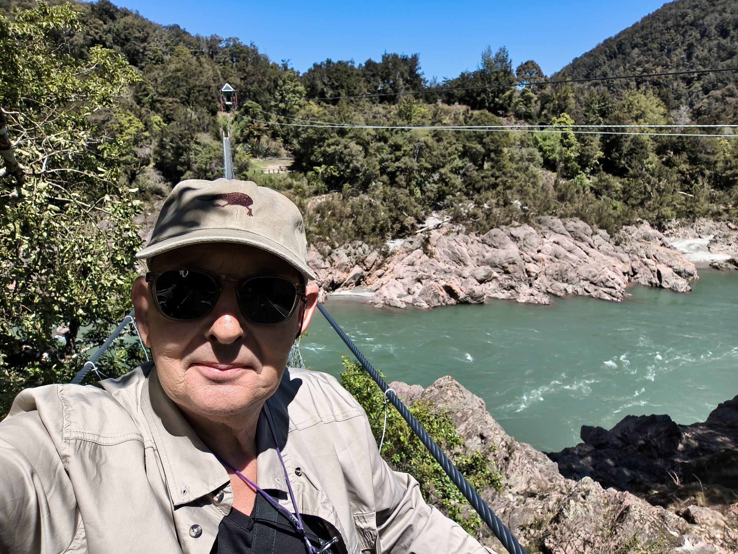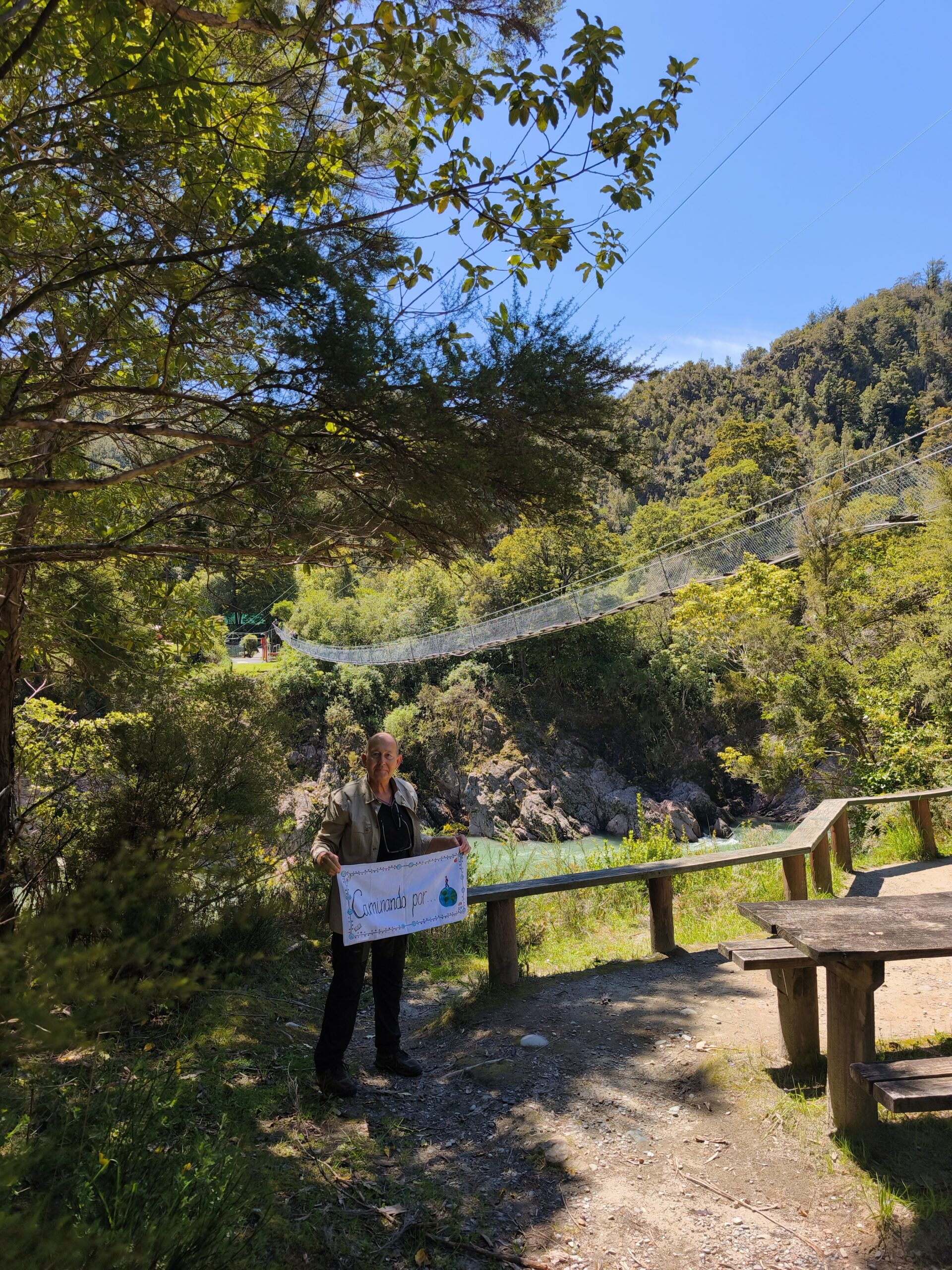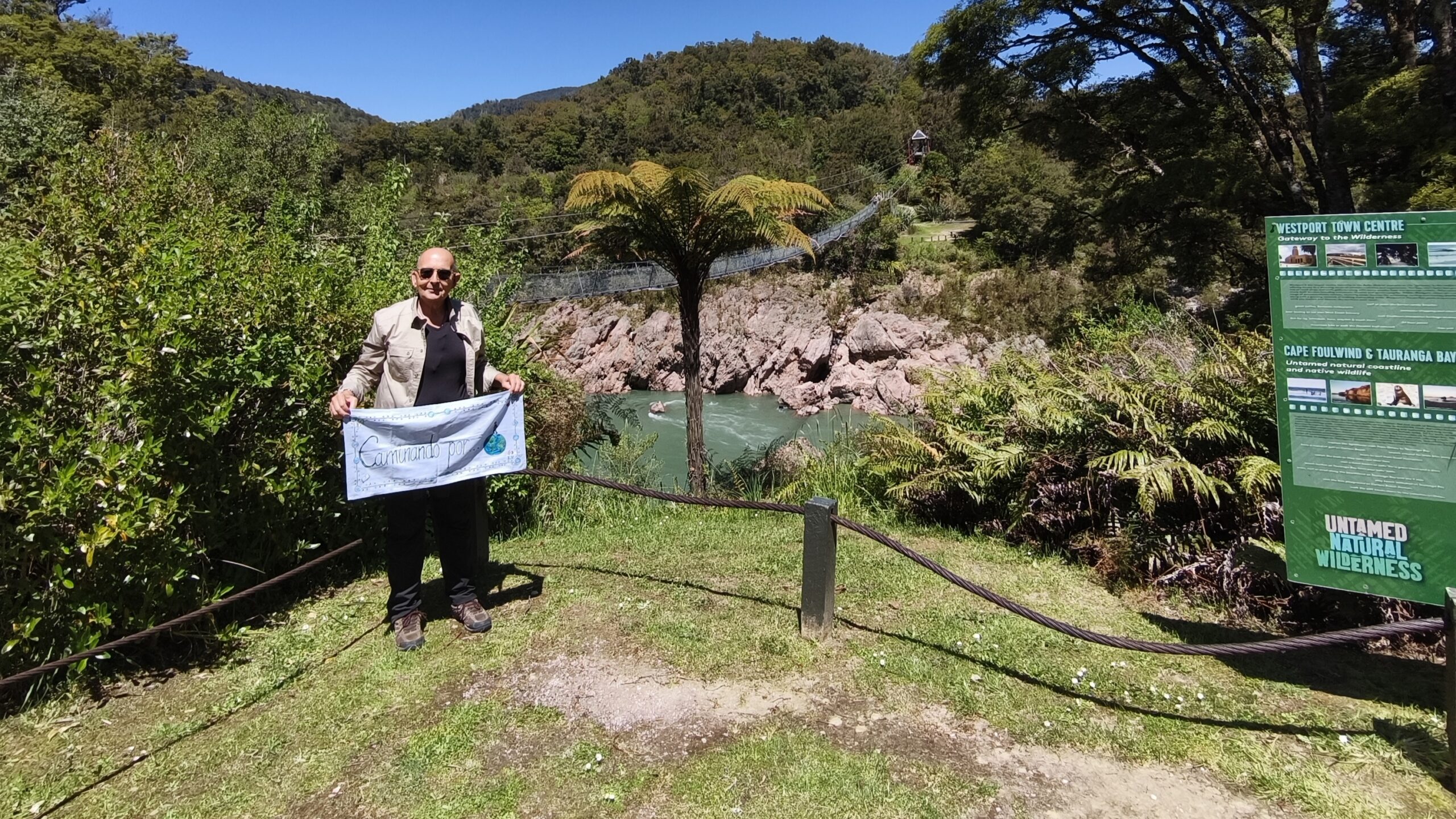 Una noche tranquila, buen sitio donde me he quedado. Hoy voy hacia la costa oeste. Un viaje a través de valles, montes, bosques y ríos. Primero por Motueka Valley para en Kohatu girar a la derecha por la R6 (la carretera que va hacia la costa oeste, baja a Franz Josef, continúa a Wanaka y Queenstown, y termina al sur, en Invercarguill) al valle de Motupiko, luego a Hope Valley y Buller Valley. Paro a tomar un café y comer algo en la pequeña localidad de Murchison. Pocos kms más adelante giro a la derecha y cruzo por Buller River Bridge (sigo por la R6) y paro en Buller Gorge Swingbridge, el puente colgante más largo de Nueva Zelanda, 110 metros de longitud, suspendido a 17,5 metros de altura sobre el río Buller. Hay rutas de senderismo y tirolina para cruzar el río. Me quedan todavía 100 kms hasta Westport. Me acerco al Cabo y Faro Foulwind antes de descansar. Cena