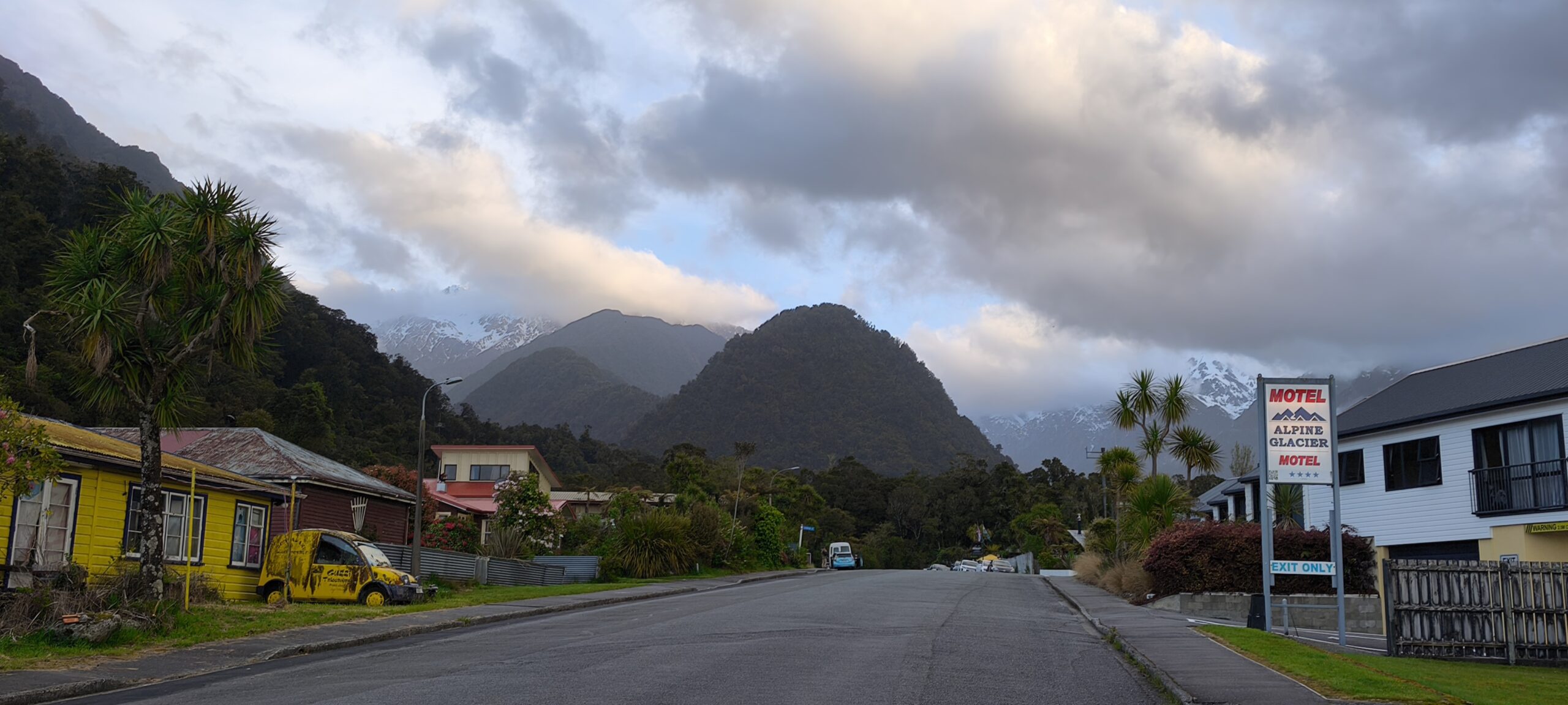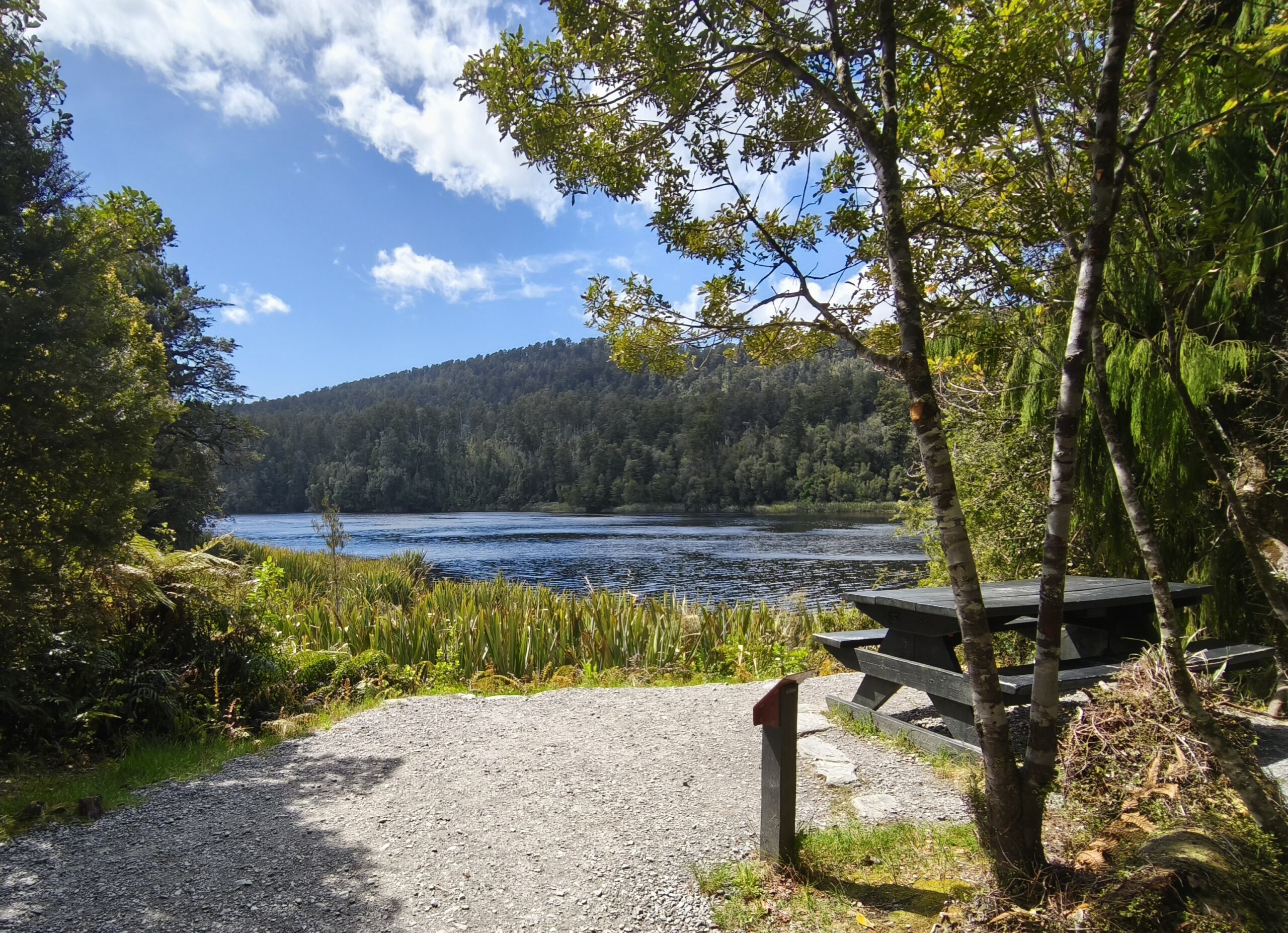 Tras las últimas compras salgo hacia el sur por la ruta SH6 hasta el destino del día, Franz Josef, pequeño pueblo pero muy animado, ya que es el centro de diversas actividades al aíre libre, montañismo, senderismo y vuelo en helicóptero sobre el glaciar que le da nombre. Paro en el camino a tomar un café y tras llegar al pueblo continúo al Pk del glaciar. En 20 minutos se llega al viewpoint, para ver la lengua del glaciar (que está el retroceso). Vuelvo al pueblo a comer, hago el check-in y voy al Matheson Lake, a algo más de media hora hacia el sur para hacer el sendero que bordea el lago. El tiempo acompaña, aunque las montañas tienen nubes y hay algo de viento. Una hora y media de recorrido. Paro en Fox Glacier a tomar un café y descansar un poco. Regreso a Franz Josef a cenar y a descansar. Por hoy ya está bien.