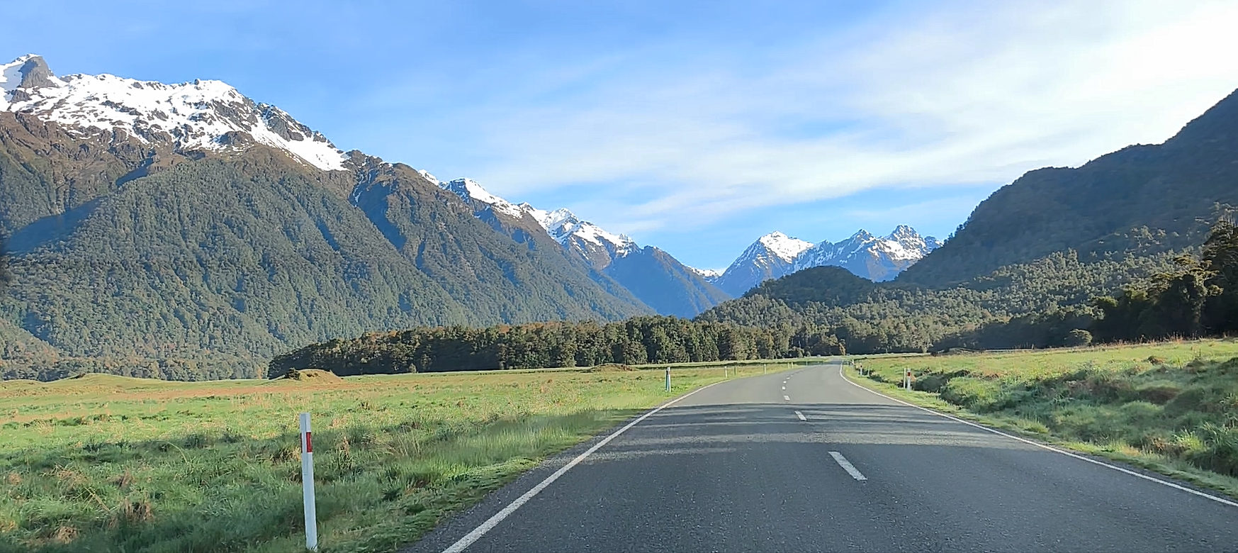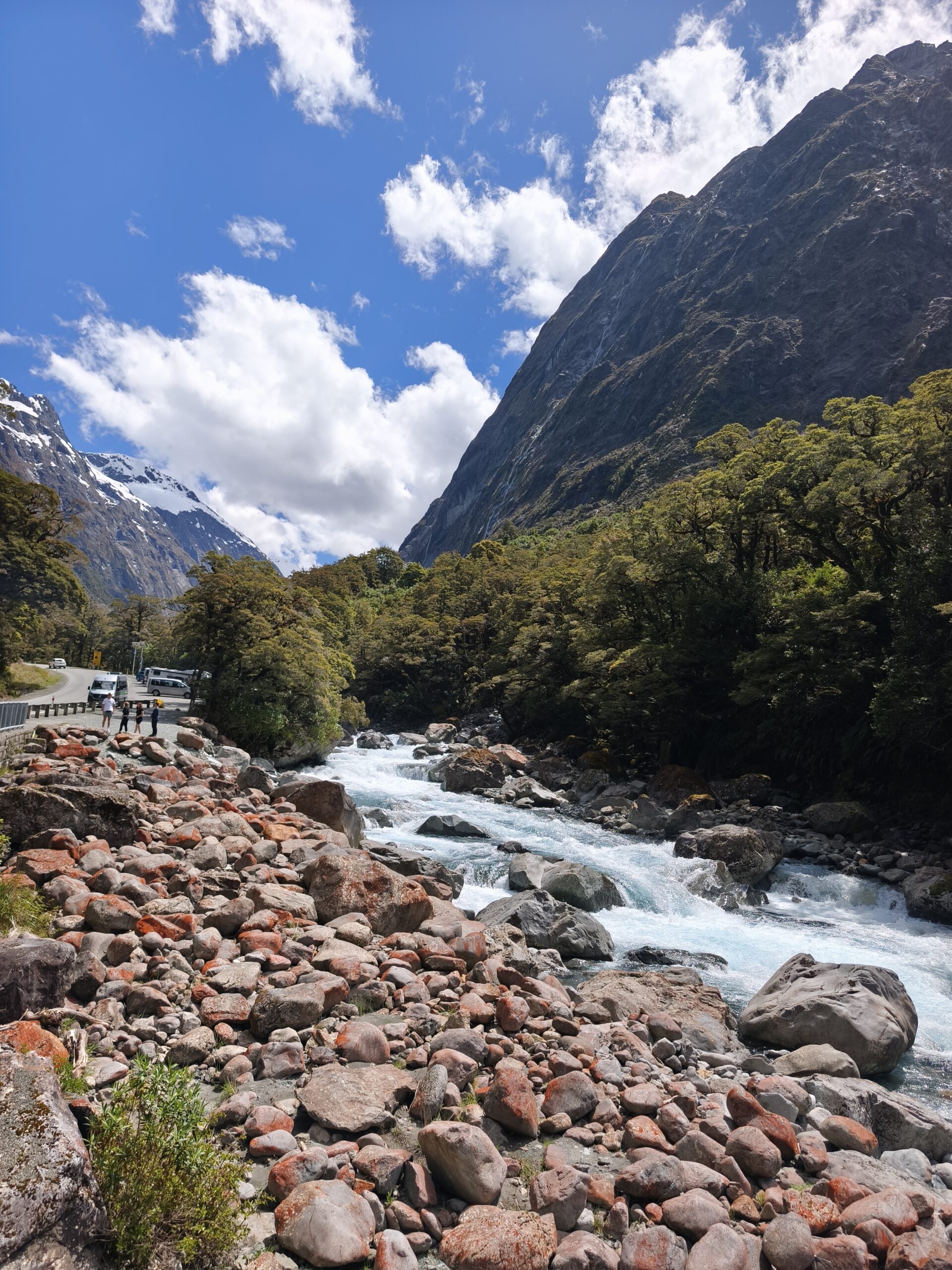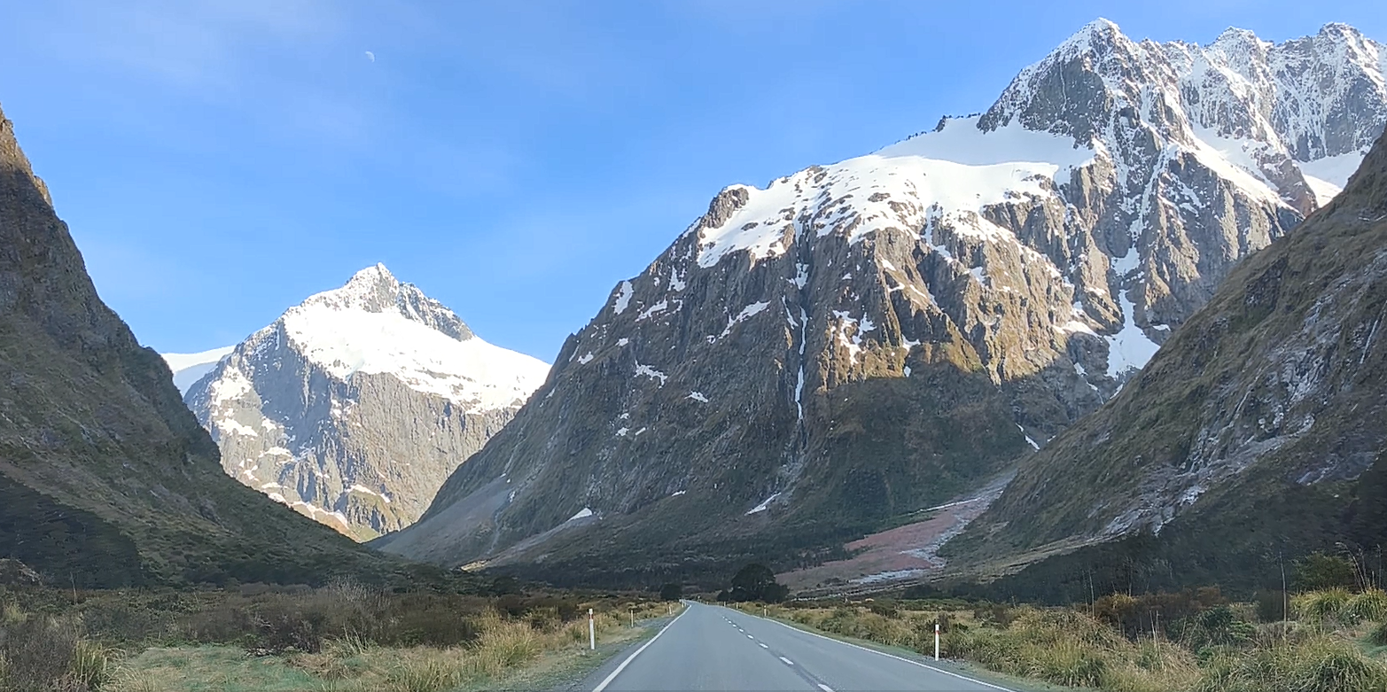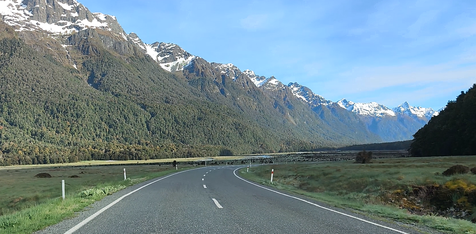 Me toca madrugar (como cada día). Antes de las 7 y media ya estoy en la Milford Road una de las carreteras escénicas del mundo, así que hay que dedicarle el tiempo suficiente para disfrutar del esa naturaleza y ese paisaje. 120 km de ida y otros tantos de vuelta desde Te Anau. Un callejón sin salida, un trayecto de montaña, de camino a Mildford Sound “Piopiotahi” (piopio: ave nativa extinta). Fiordo (estilo noruego) del que salen cruceros para visitarlo. Descubierto por los maoríes desde hace más de 1000 años, fuente de pesca y de caza, también recolectaban el preciado “pounamu”, piedra verde y dura, el jade Neozelandés, un tesoro espiritual y cultural, usado como arma y adorno. Descubierto por los europeos a inicios de S XIX. Patrimonio de la humanidad en 1990. El destino turístico más famoso de NZ. Se tarda 2h 15m sin paradas ni prisa. Hay 4-5 sitios donde parar en el trayecto. El Pk de pago es por horas. El recorrido va hasta la entrada del fiordo y regreso, 2h. Los barcos pequeños se acercan más a las cascadas (y te calas más).