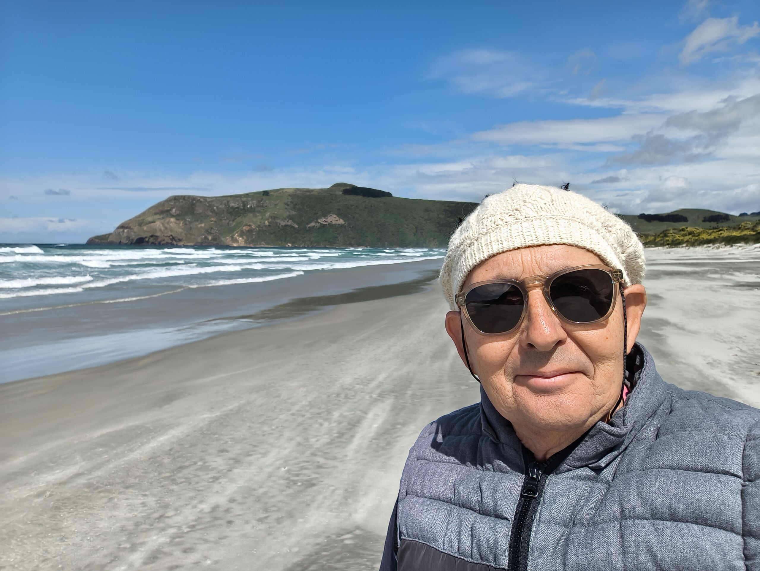 Dedico la mañana a recorrer la Península de Otago. Voy Por Portobello road, que costea el largo puerto de Otago. Continúo hasta Broad Bay, donde giro a la derecha, para subir a la zona del Castillo de Larnach, con diversos sitios desde donde tener vistas a toda la parte norte y al puerto de Otago. Bajo y continúo hasta Taiaroa Head (faro), con un viento que azota el cuerpo desde el mirador del Royal Albatros Centre. Rápidamente se forman nubes que nos descargan una lluvia racheada. Los otros visitantes corren a los coches a guarecerse. Vuelvo hasta Portobello donde es buen momento para tomar un café, antes de continuar hasta Allans beach, a donde se llega por un camino de ripio de 4 kms y luego hay que pasar por un prado privado antes de acceder a la playa. El viento es y será el protagonista del día. Sigo hasta Sandfly bay, playa a la que se accede tras un sendero descendente hasta llegar a unas dunas con 1 km de recorrido antes de acceder a la playa. Aunque va siendo la hora de comer me acerco a Baldwin Street la calle empinada de Dunedin que gusta tanto a los chinos.