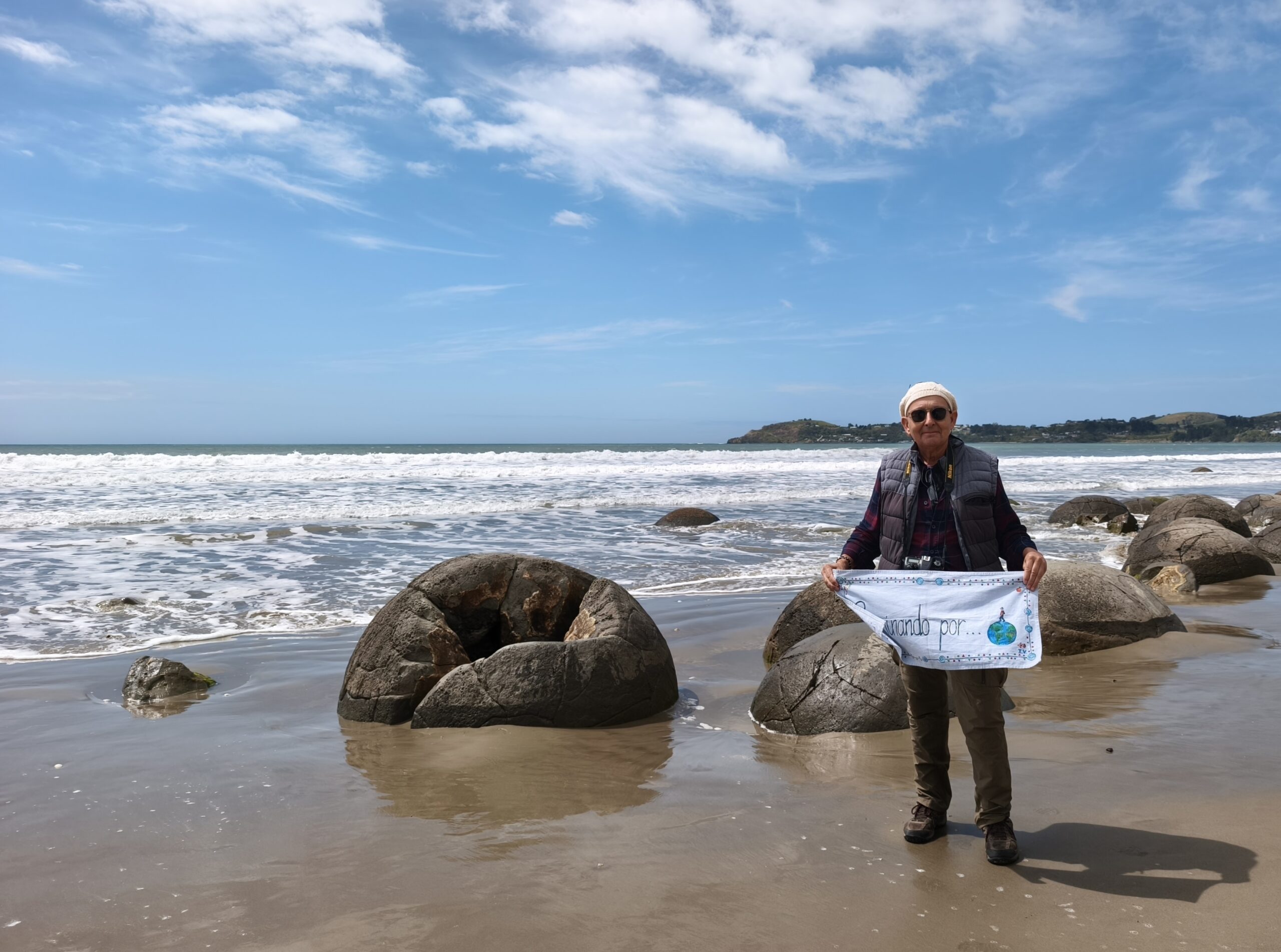 Se nota que es domingo, la gente no madruga. Salgo por la SH1 hacia el norte con un día soleado, aunque fresco y ventoso. Aquí la gente tiene un poco “levantada la cabeza” (repetidos pitidos de claxon). Continúo por la Coast Rd, conocida como la Karitane Scenic Route, con miradores y vistas increíbles de la costa con el océano Pacífico de protagonista. El más destacado de los miradores es el Puketeraki Lookout. Vuelvo a la NZ SH1 hasta Shag Point/Matakaea, un punto con unas bonitas vistas y que cuenta con una pequeña colonia de focas. Al mirador se llega haciendo un camino muy breve de 5 minutos, Matakaea Walk. Sigo hasta las Moeraki Boulders en la playa de Koekohe. Las Moeraki son concreciones de calcita formadas hace entre 65 y 13 M de años. Rocas que comenzaron a formarse en el lecho marino por la compactación del barro. Están compuestas por barro, limo y arcilla y el material que actúa como cemento es la calcita. El grado de dureza varía del interior, blando, al exterior, duro al encontrarse la calcita en la corteza exterior. Los maorís creen que unos navegantes llegaron desde una tierra conocida como Hawaiki (no confundir con Hawaii). La canoa en la que venían encalló en la costa. Los restos de la canoa formaron un arrecife y las rocas representan las canastas de anguilas y calabazas que llegaron a la orilla. Los últimos 70 kms son por la muy transitada SH1 hasta Oamaru. Hoy es domingo y por la tarde se ve muy poca gente en la calle. Paseo por Thames St, su calle principal, casi desierta. Voy a ver los jardines y antes de cenar en Scott Brewery me acerco al puerto. Una tarde ventosa y fría.