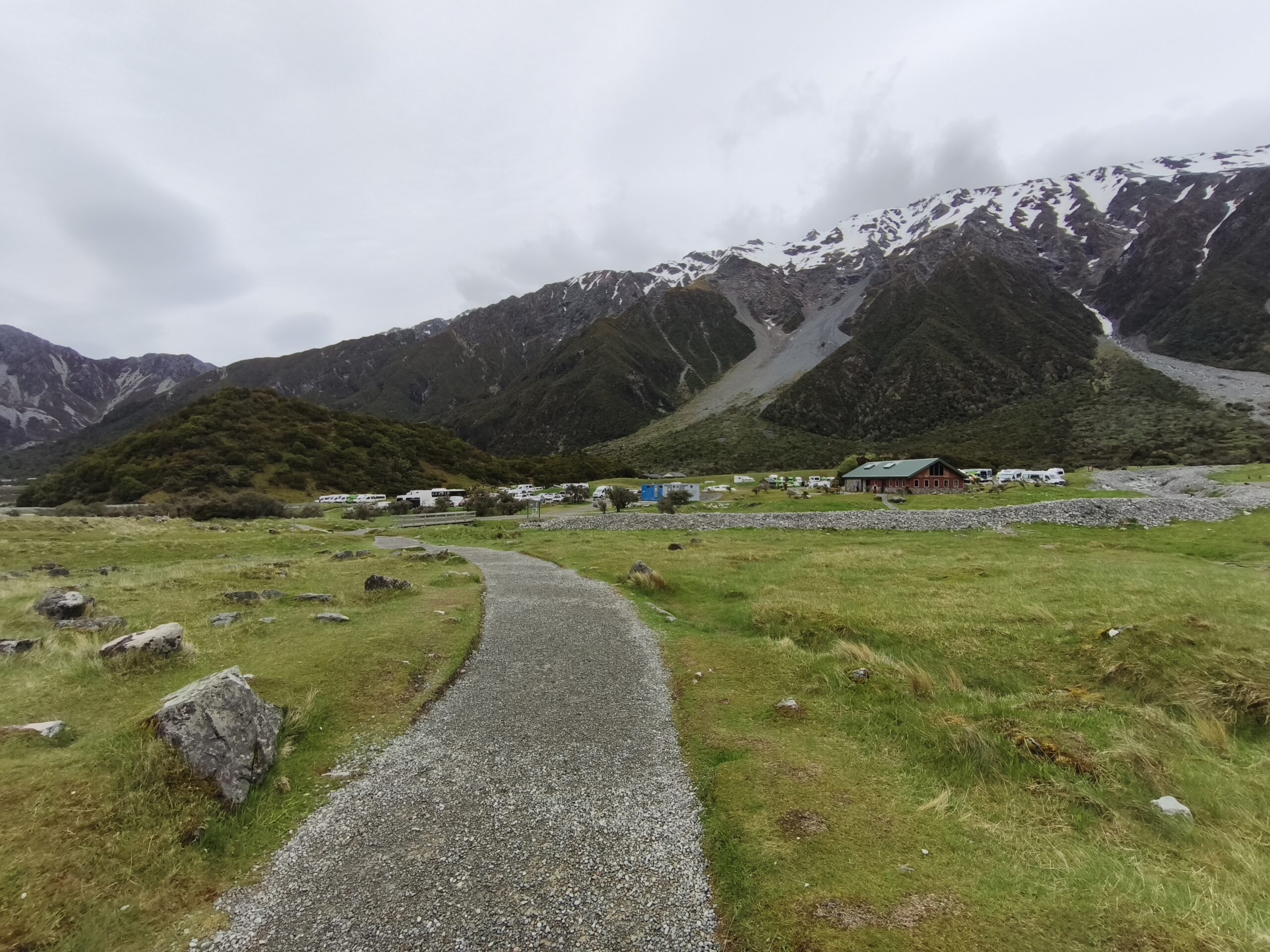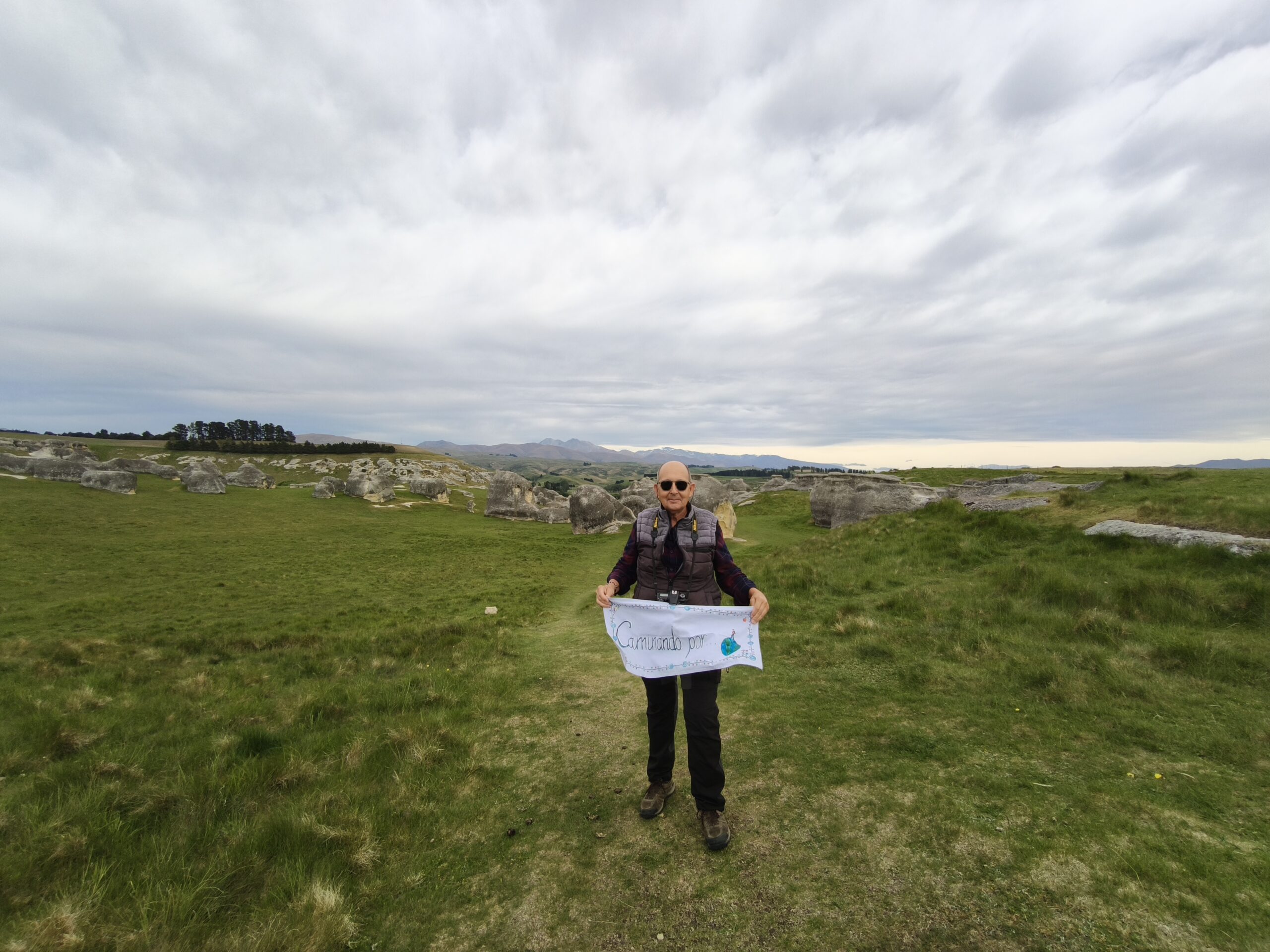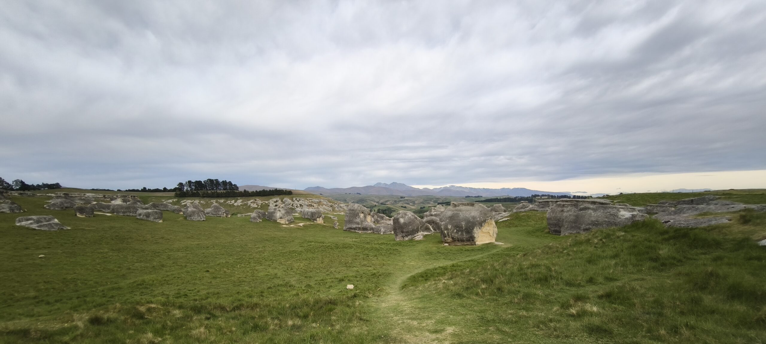 Salgo sin prisa hacia el norte, pero pronto giro a la izquierda por la 83, hacia el interior y la parte este de los Alpes Neozelandeses. Campos de cultivo, sin bosques. Un día con buena temperatura aunque cubierto. Paro en Elephant Rock, unas curiosas rocas enormes que por su tamaño dicen que tienen forma de elefante. Son rocas calizas erosionadas, de 23-25 M de años de antigüedad. Muchas de ellas contienen fósiles. Estas rocas se han hecho famosas entre otras cosas por aparecer en películas como Las Crónicas de Narnia (campamento de Aslan). Los kiwis lo utilizan mucho para hacer picnic o ir con los niños. Paro a comer en Omarama, antes de llegar a Twizel. Hoy día tranquilo.