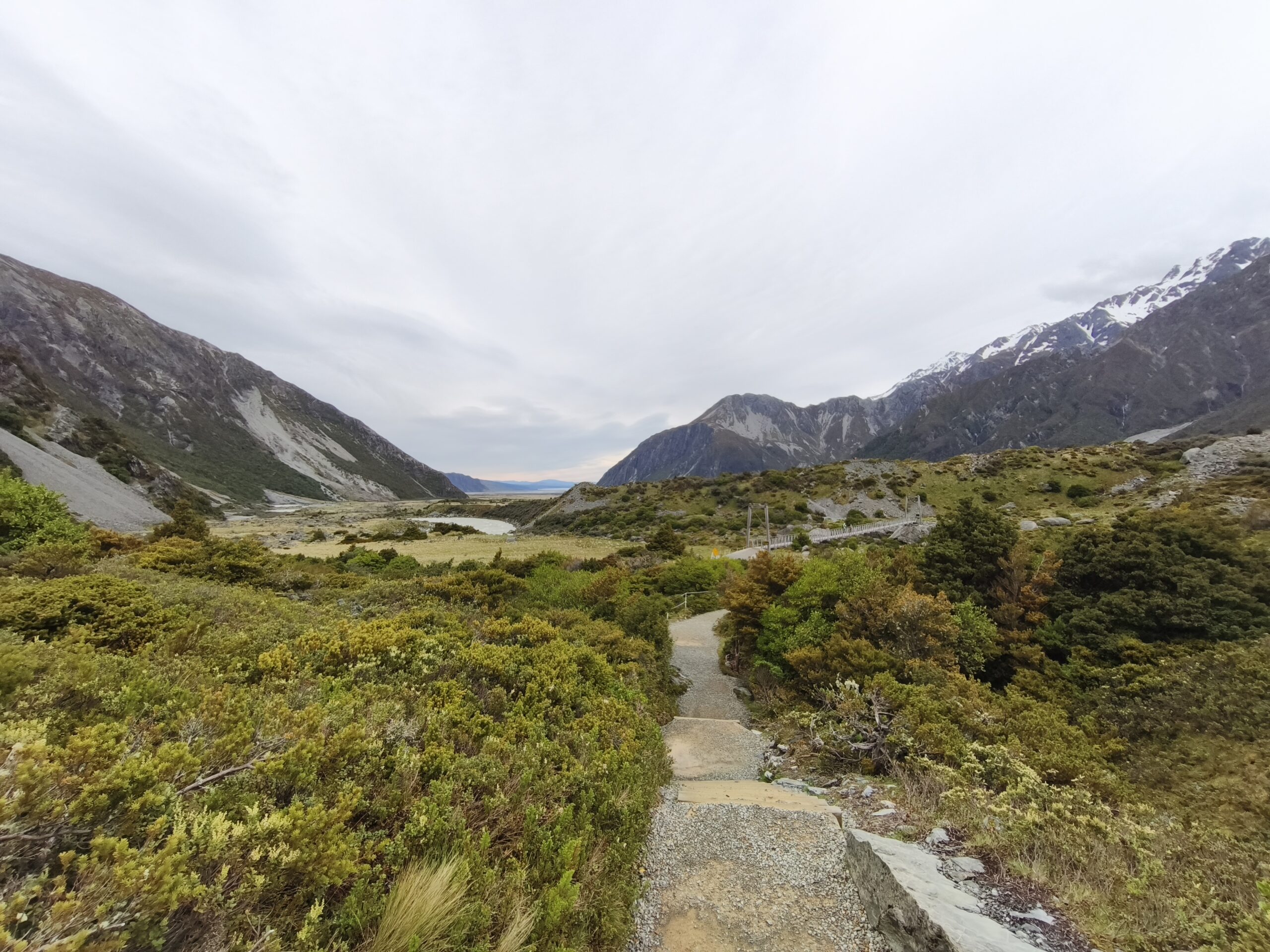 Madrugo con el día. Poco más de las 7 de la mañana, después de desayunar, ya voy camino del Hooker Valley Track, sencillo sendero en el valle del mismo nombre. En el parking ya hay mucha actividad. El sendero está cortado antes del segundo puente debido a que las fuertes lluvias del invierno lo dañaron. Regreso al Motel y tras recoger las maletas pongo rumbo a Christchurch. Voy parando en los diversos miradores del lago Pukaki. Continuó hasta el lago Tekapo, la ruta que hice el día anterior con tanta inclemencia meteorológica. Hoy el horizonte está despejado y tiene otra mirada. La ruta es larga, más de 300 km. Continúo por la SH8, con campos y prados con ganado a ambos lados de la carretera. En Fairlie me desvío a la izquierda, siguiendo la SH79 hasta Orari. Es un buen momento para reponer fuerzas comiendo en un bar de carretera. Aquí se coge la SH1 hasta Christchurch. Tras descansar un rato salgo a media tarde a pasear y conocer la parte del centro, con zonas muy animadas en Oxford Terrace y detrás de la Catedral, todavía en remodelación por los daños sufridos tras el terremoto de 2011. Ceno en Chiwahwah Bar, lleno y muy animado.