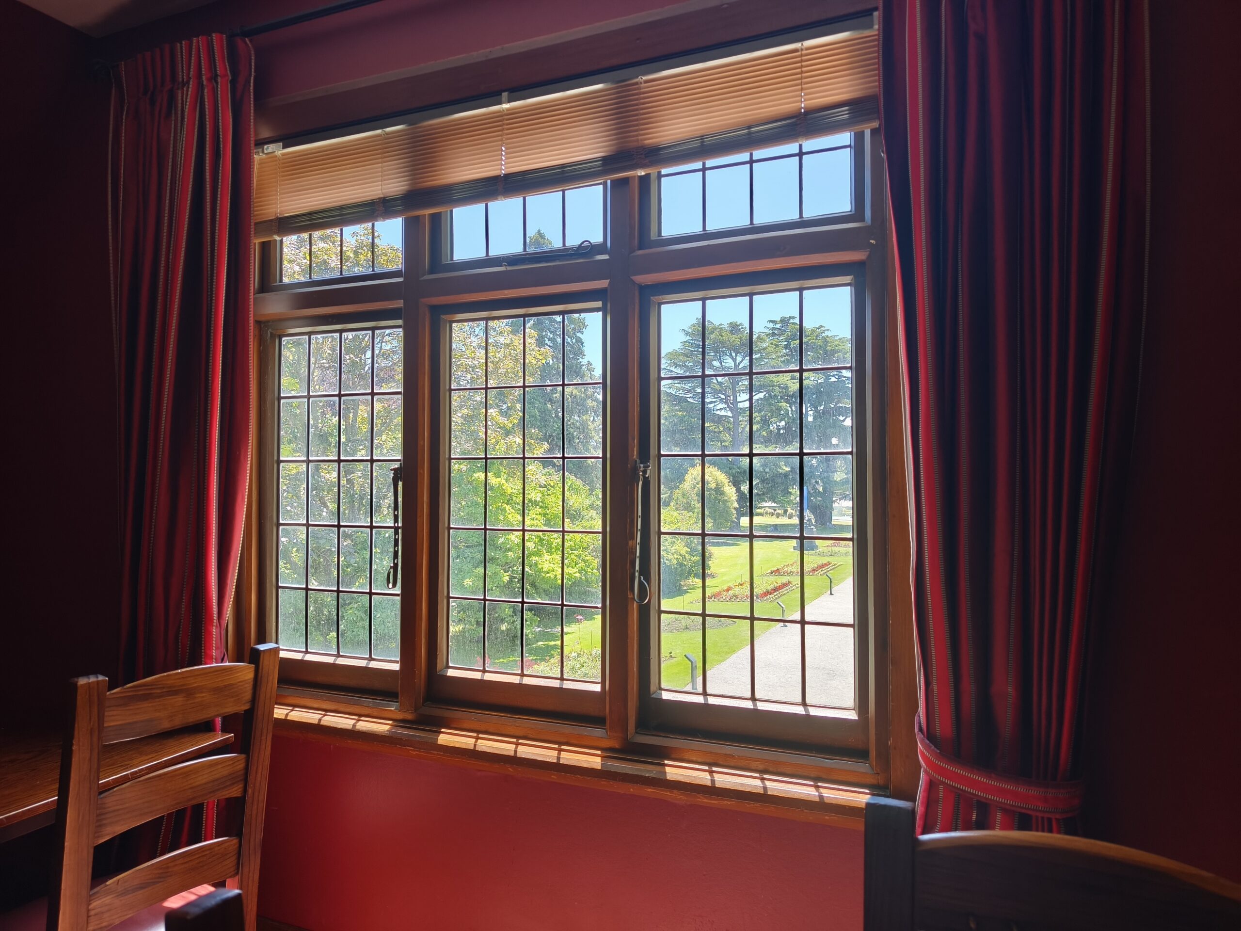Día soleado. Dedico el día a la localidad, voy paseando por el centro, de nuevo, y hago las últimas compras. Visito el Jardín Botánico, muy agradable y bien cuidado, con un río que lo recorre a lo largo, a la sombra de árboles preciosos. Como en la antigua casa del guarda, hoy restaurante. Tras descansar salgo a media tarde para un último paseo y cena de despedida en The Church Pub.