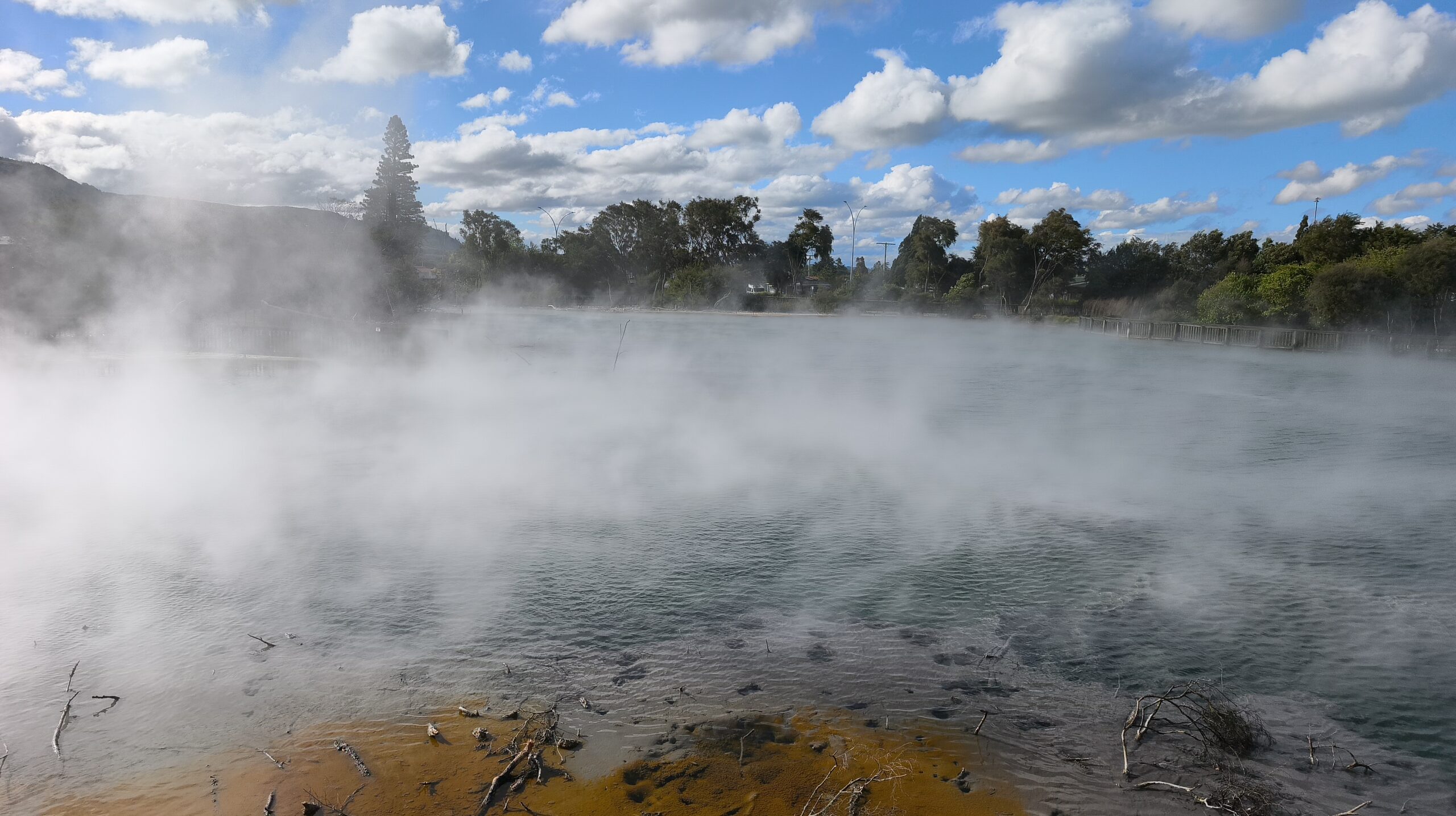 Para aprovechar la mañana he decidido llegar hasta el Puerto de Tauranga y hacer la ascensión a Mount Maunganui. Esta localidad costera (“montaña grande”) es la hermana menor de Tauranga. Muy frecuentada en verano (relax, baño, surf, cruceros). Subir a la cima (más de 1M de visitantes al año) es imprescindible para ver el horizonte interminable de la Bay of Plenty. A las 4pm llego a Rotorua. Tras el chech-in en el motel y descansar un poco me acerco a Kuirau Park, tiene piscinas azufradas y ardientes. Con el coche voy al parque del lago, lleno de niños. Muy cerca está Eat Street, que ya empieza a llenarse para cenar. He decidido llegar hasta Redwoods Treewalk para ver la noche entre los árboles.